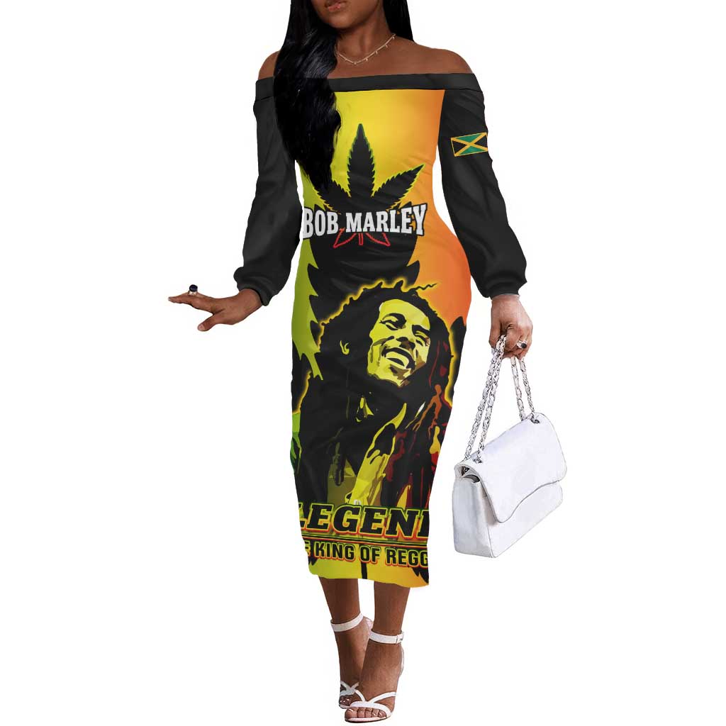 Afro Jamaica Legend Bob Off The Shoulder Long Sleeve Dress The King Of Reggae