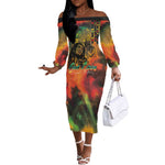Afro-Jamaican Reggae Legend's Birthday Off The Shoulder Long Sleeve Dress One Love Jamaica LT03