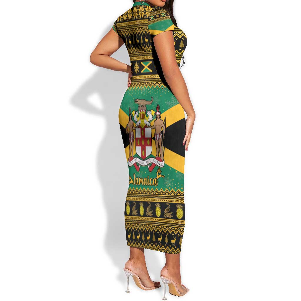 Afro-Jamaicans Short Sleeve Bodycon Dress Coat Of Arms - Merry Christmas