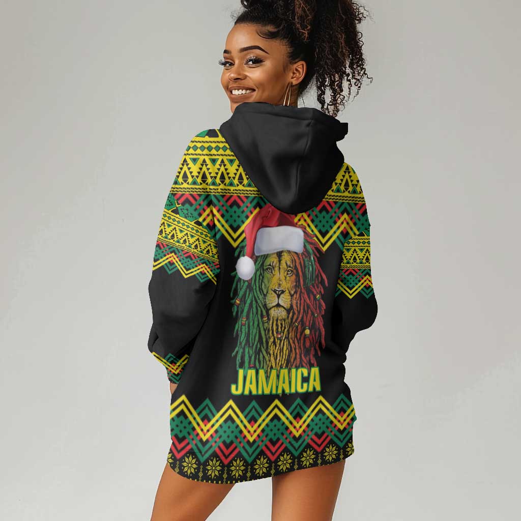 Black Jamaican Christmas Hoodie Dress Reggae Lion With Kente Pattern