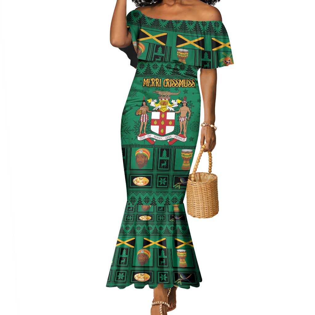 Personalized Afro-Jamaicans Merri Crissmuss Mermaid Dress Coat Of Arms - Xmas