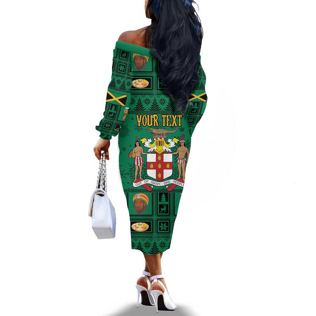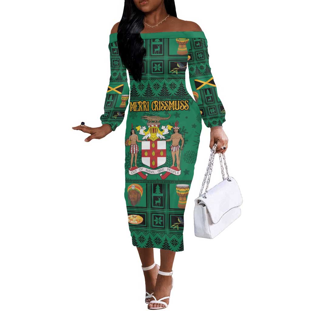 Personalized Afro-Jamaicans Merri Crissmuss Off The Shoulder Long Sleeve Dress Coat Of Arms - Xmas