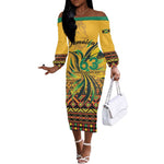 Personalized Black Jamaican Independence Day 1962 Off The Shoulder Long Sleeve Dress Jumieka Streamertail Reggae Pattern LT01