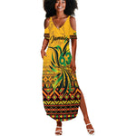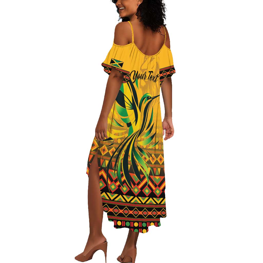 Personalized Black Jamaican Independence Day 1962 Summer Maxi Dress Jumieka Streamertail Reggae Pattern