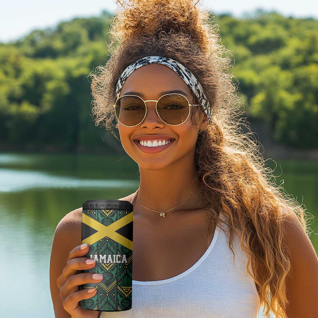 Afro-Jamaicans Football Custom 4 in 1 Can Cooler Tumbler Black Ethnic Motifs