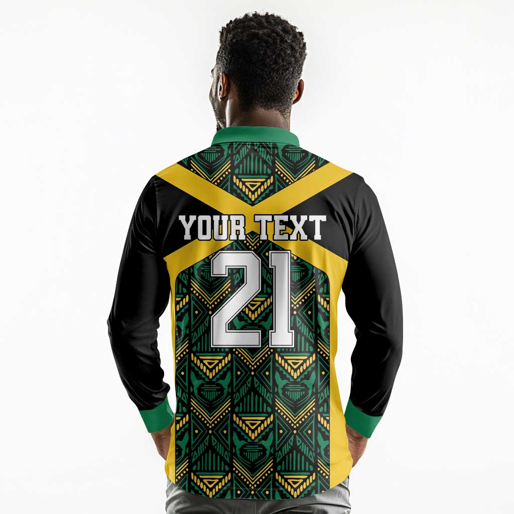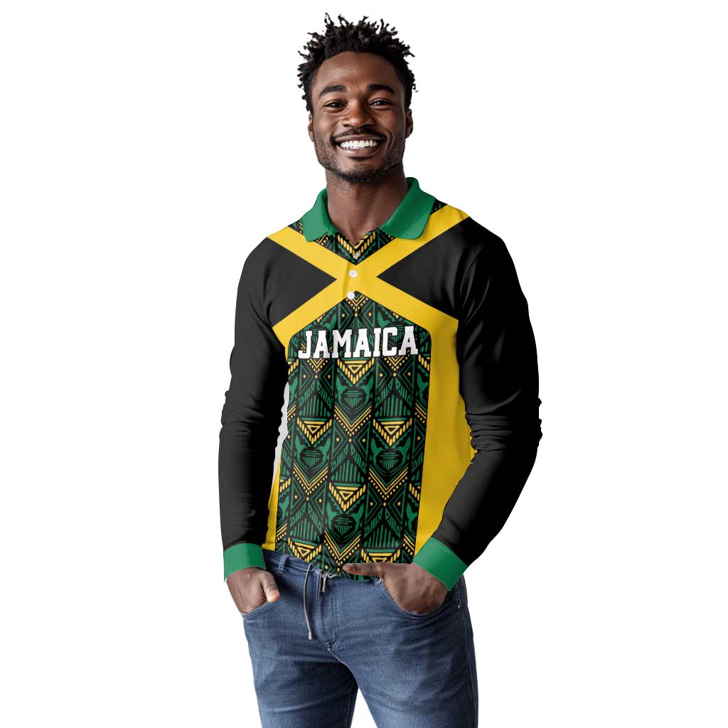 Afro-Jamaicans Football Custom Long Sleeve Polo Shirt Black Ethnic Motifs