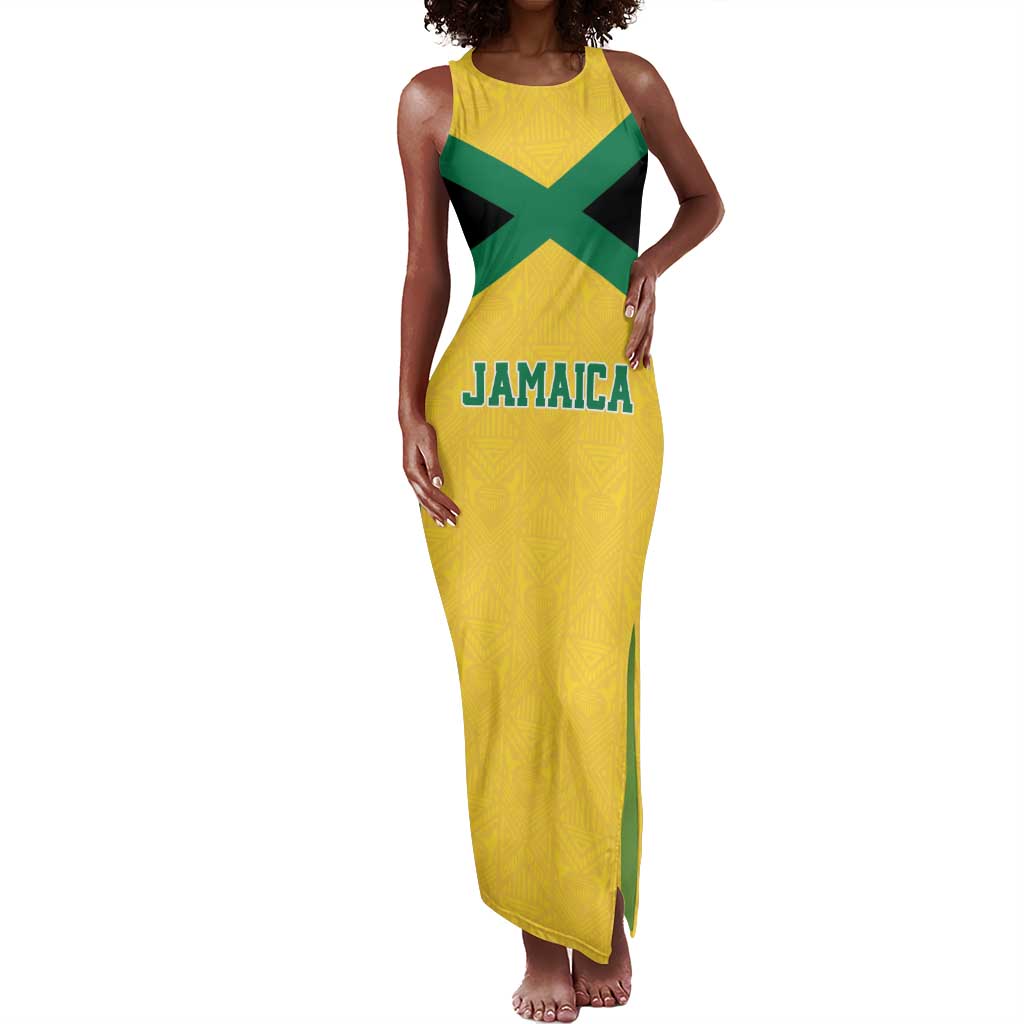 Afro-Jamaicans Football Custom Tank Maxi Dress Gold Ethnic Motifs