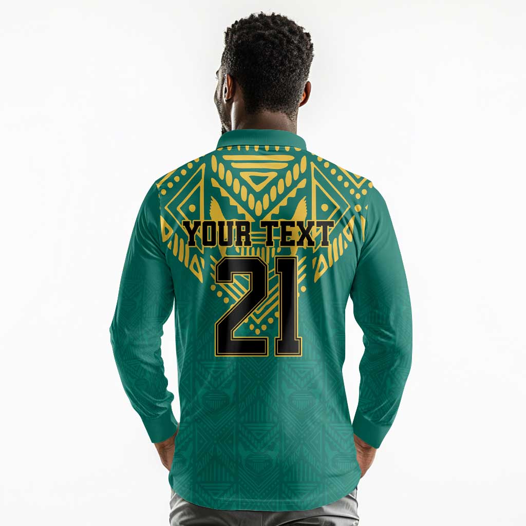 Afro-Jamaicans Tribal Custom Football Long Sleeve Polo Shirt Green Style