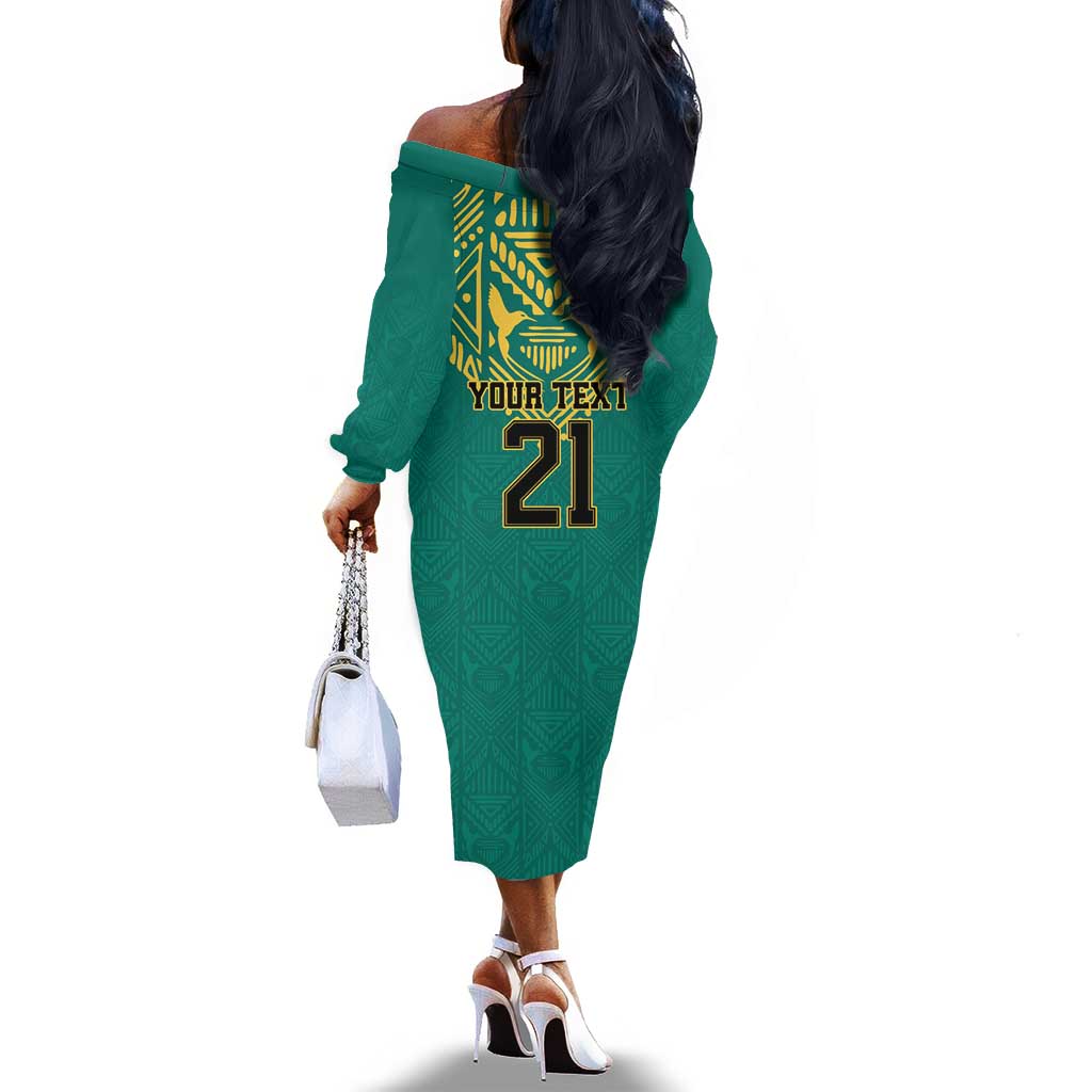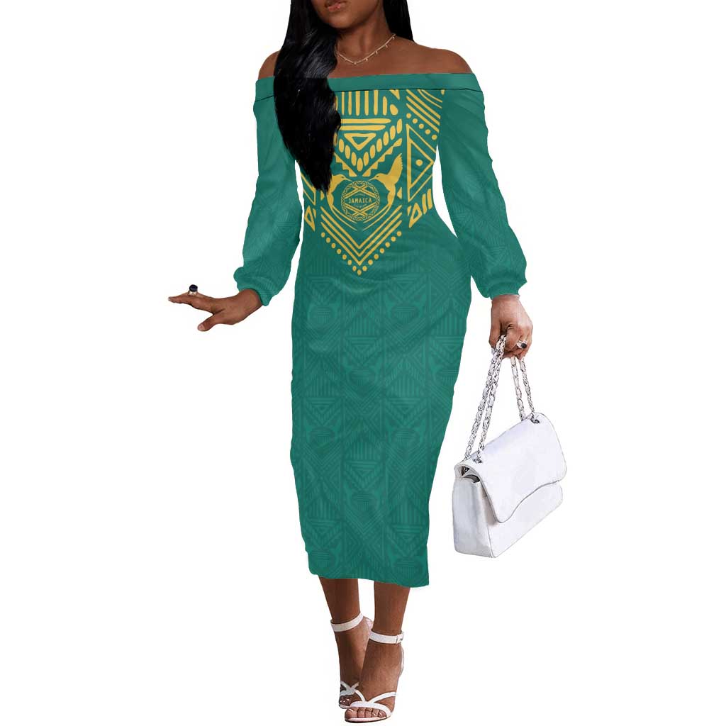 Afro-Jamaicans Tribal Custom Football Off The Shoulder Long Sleeve Dress Green Style
