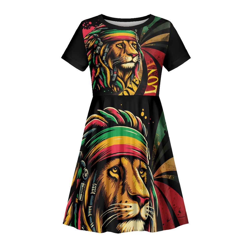 Black Jamaican Kid Short Sleeve Dress Rastafarian Lion One Love
