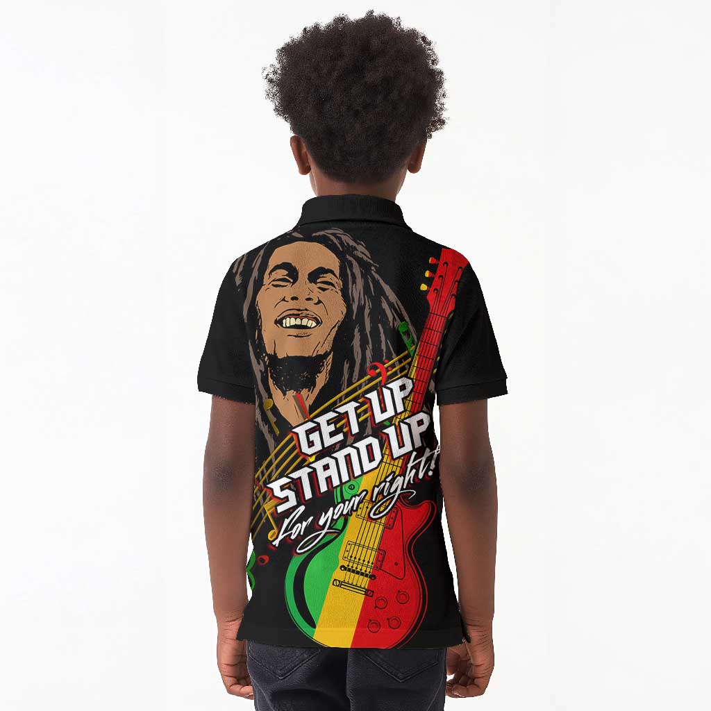 Legend Bob Get Up Stand Up Kid Polo Shirt Black Jamaican Reggae Multicolored
