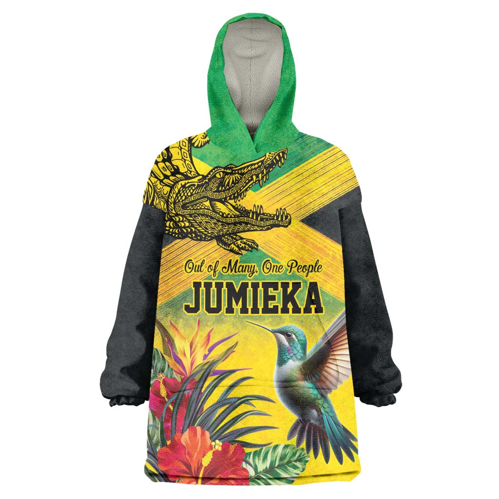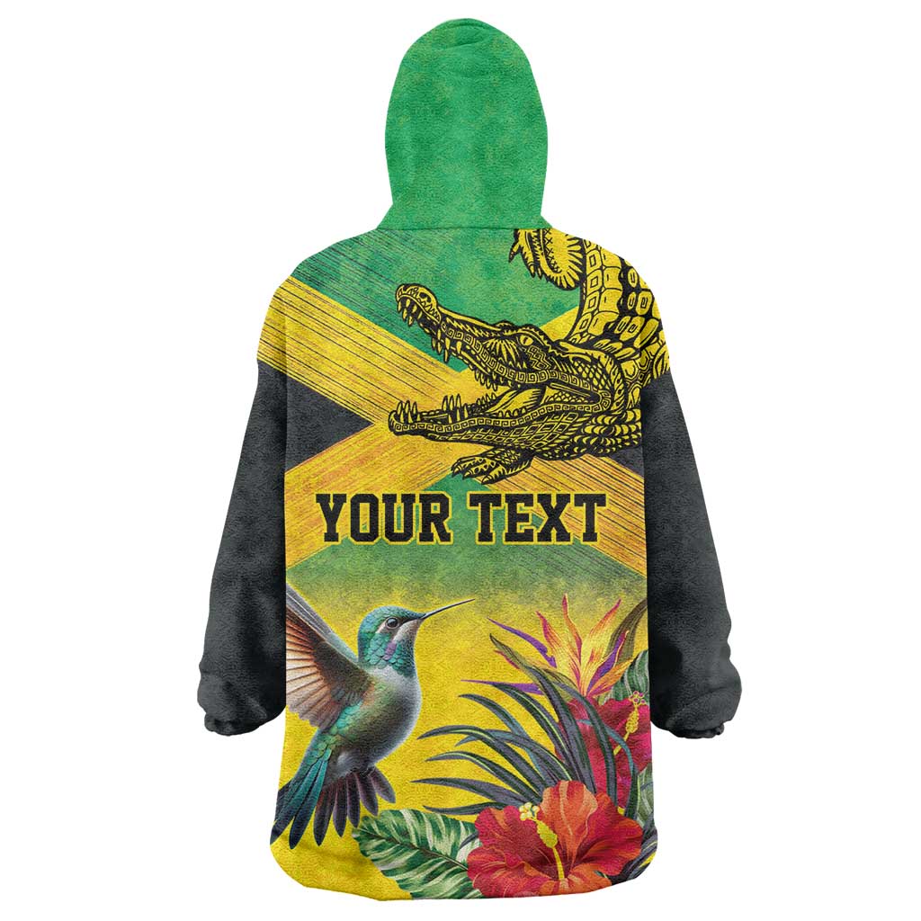 Personalized Black Jamaicans Crocodile Hummingbird Kid Wearable Blanket Hoodie Tropical Flowers Grunge Flag