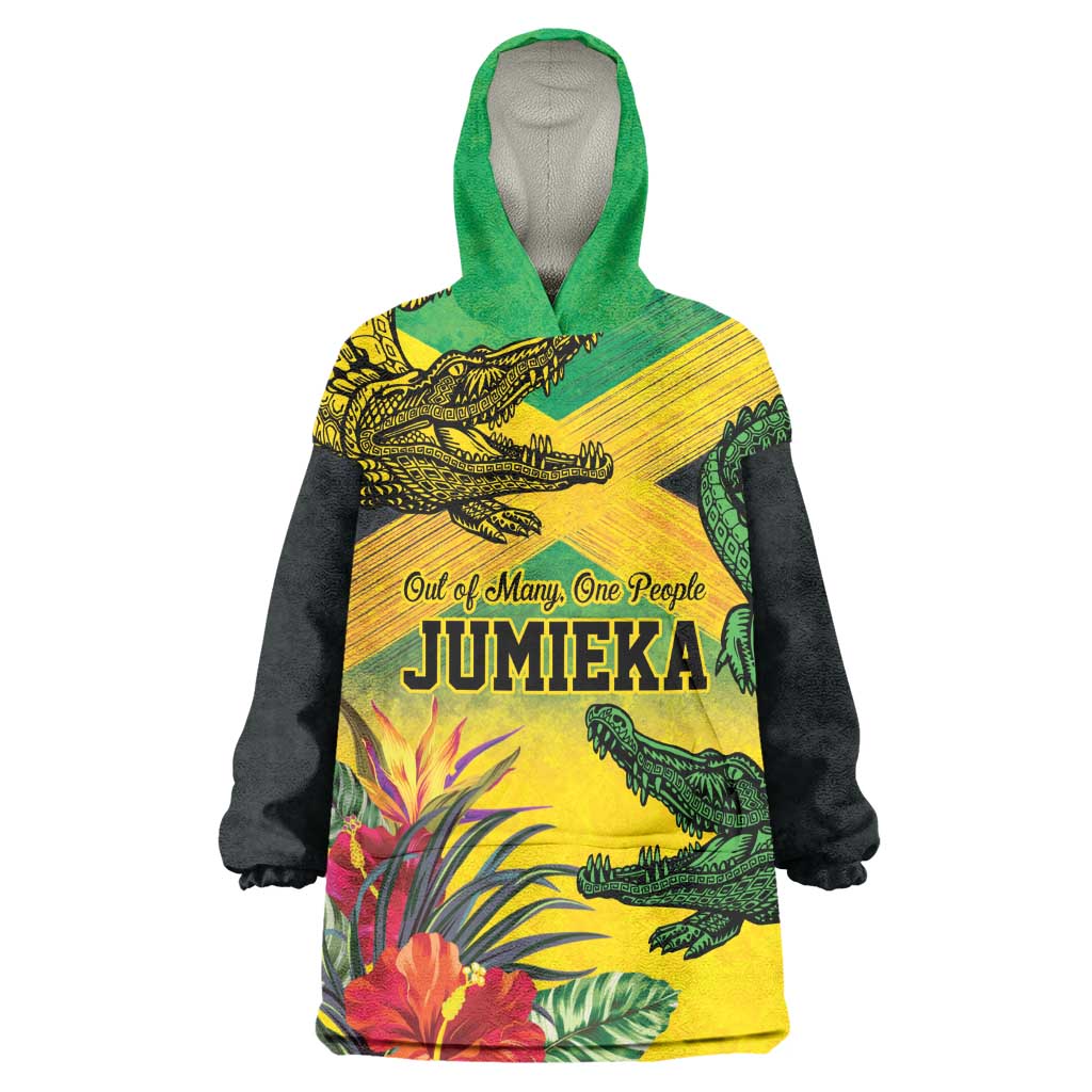 Personalized Black Jamaicans Crocodile Kid Wearable Blanket Hoodie Tropical Flowers Grunge Flag