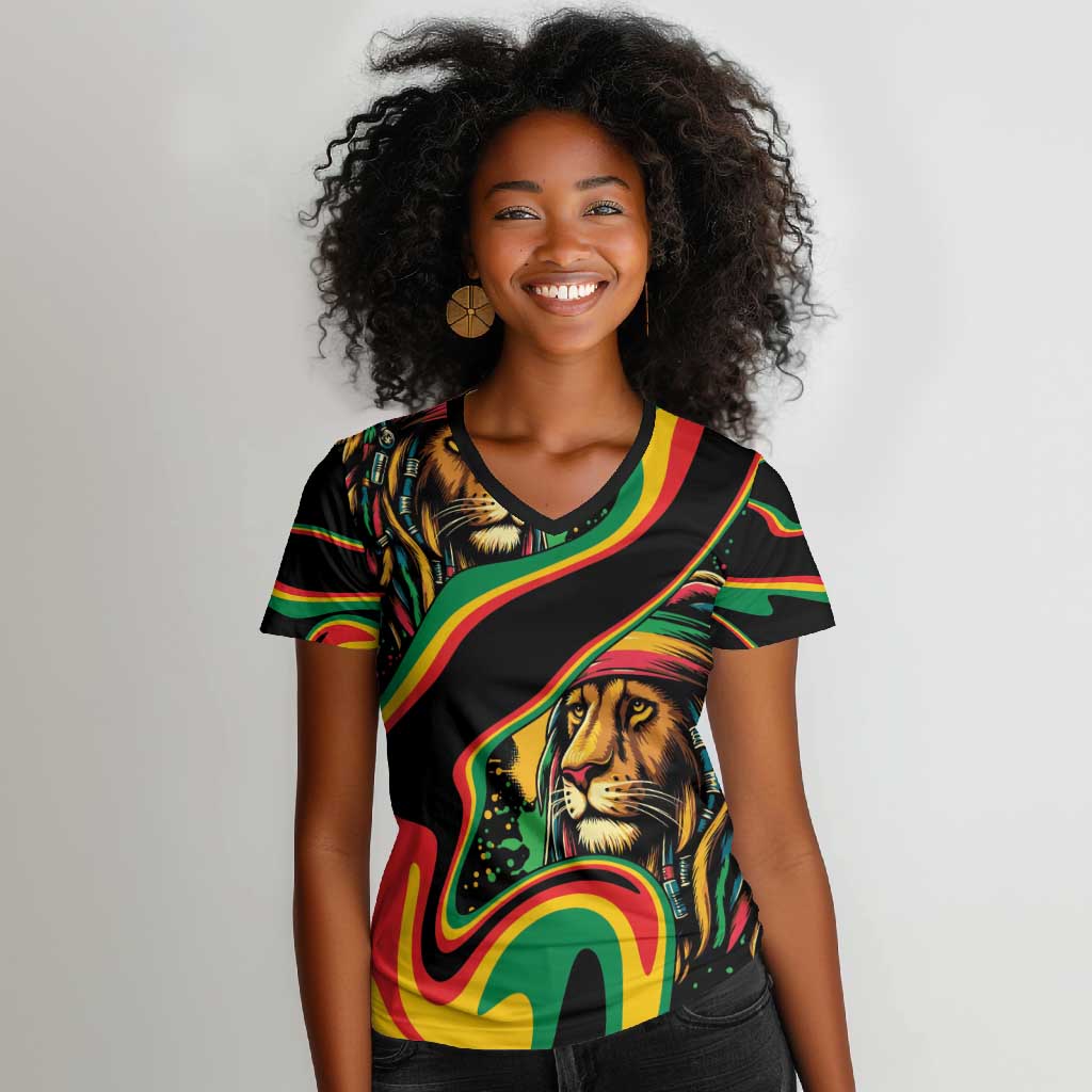 Proud Afro-Jamaicans Rasta Lion Women V-Neck T-Shirt Reggae My Soul