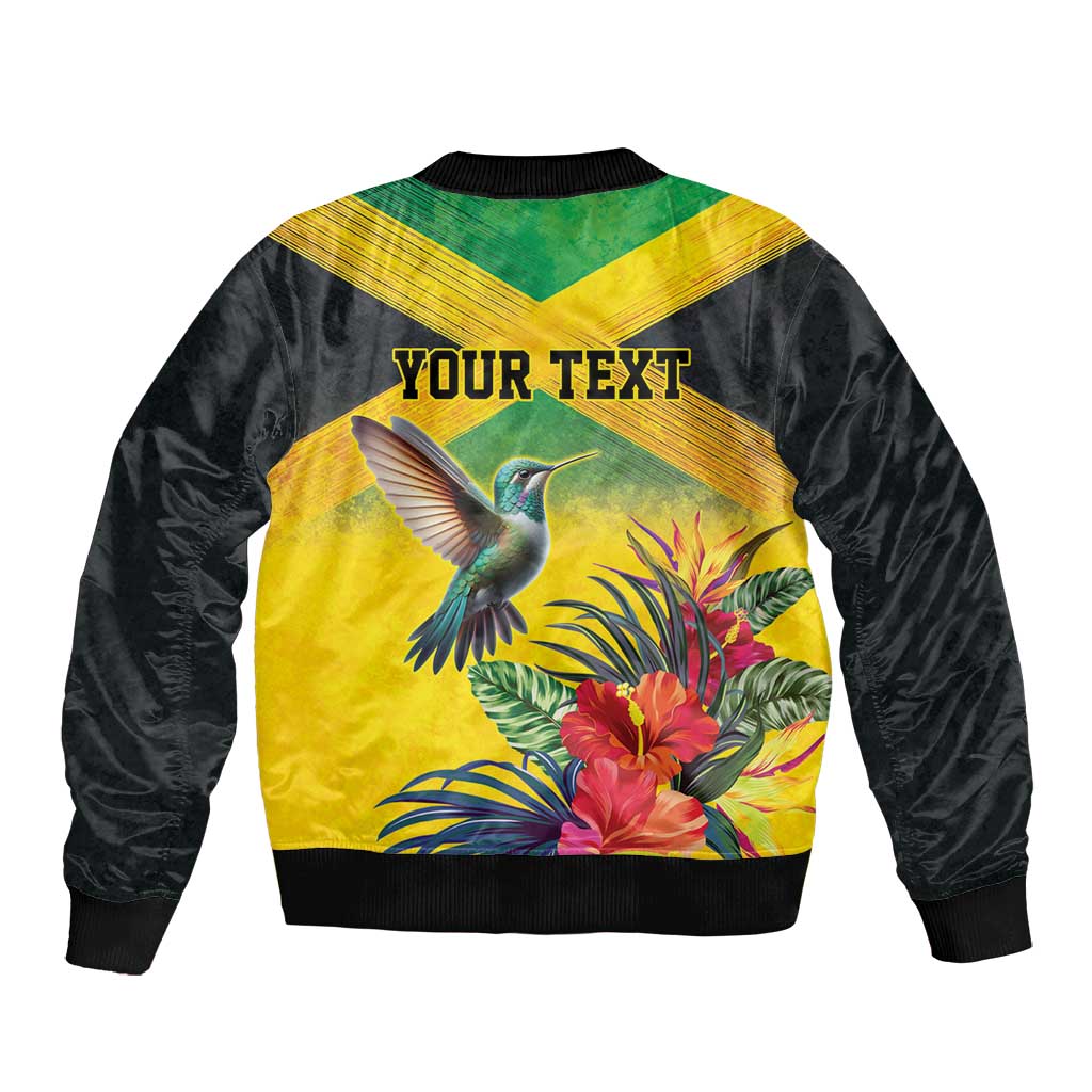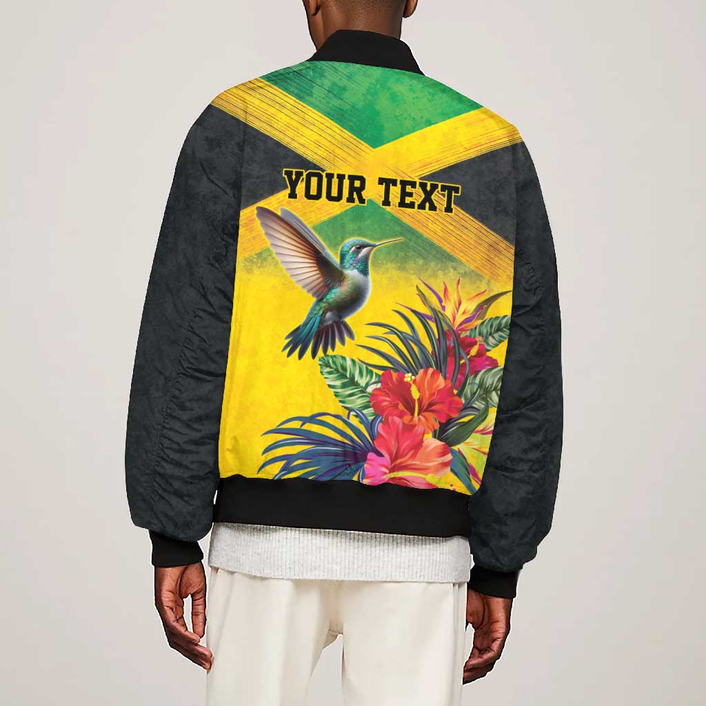 Personalized Black Jamaicans Hummingbird Bomber Jacket Tropical Flowers Grunge Flag