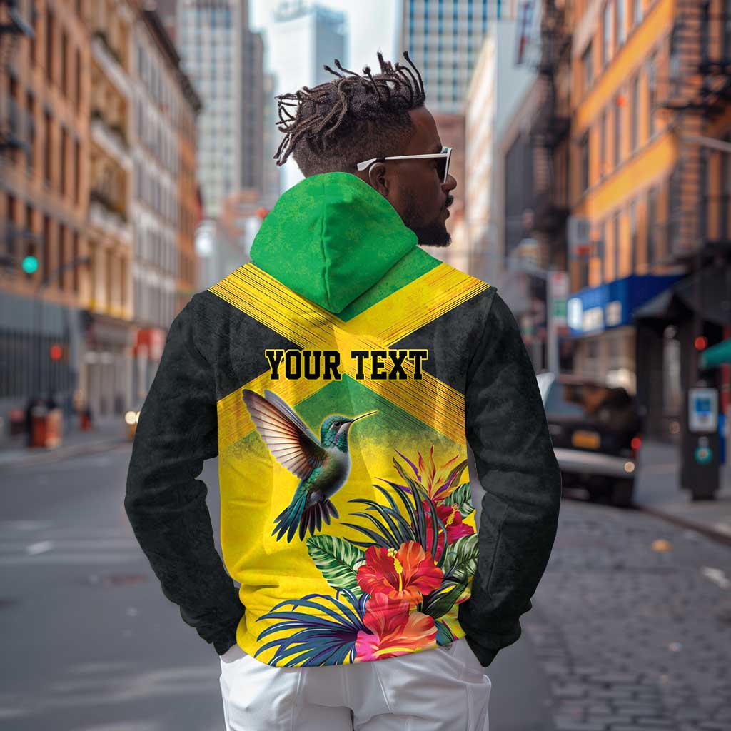 Personalized Black Jamaicans Hummingbird Zip Hoodie Tropical Flowers Grunge Flag