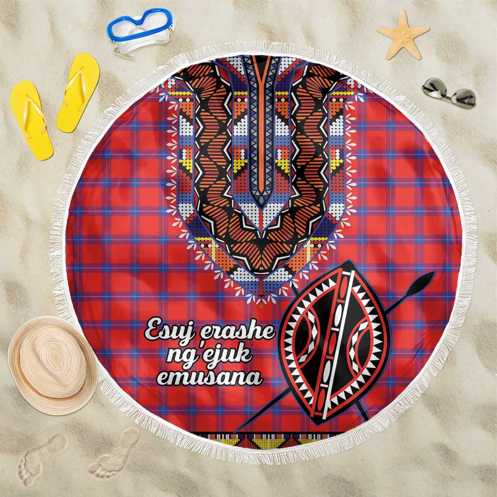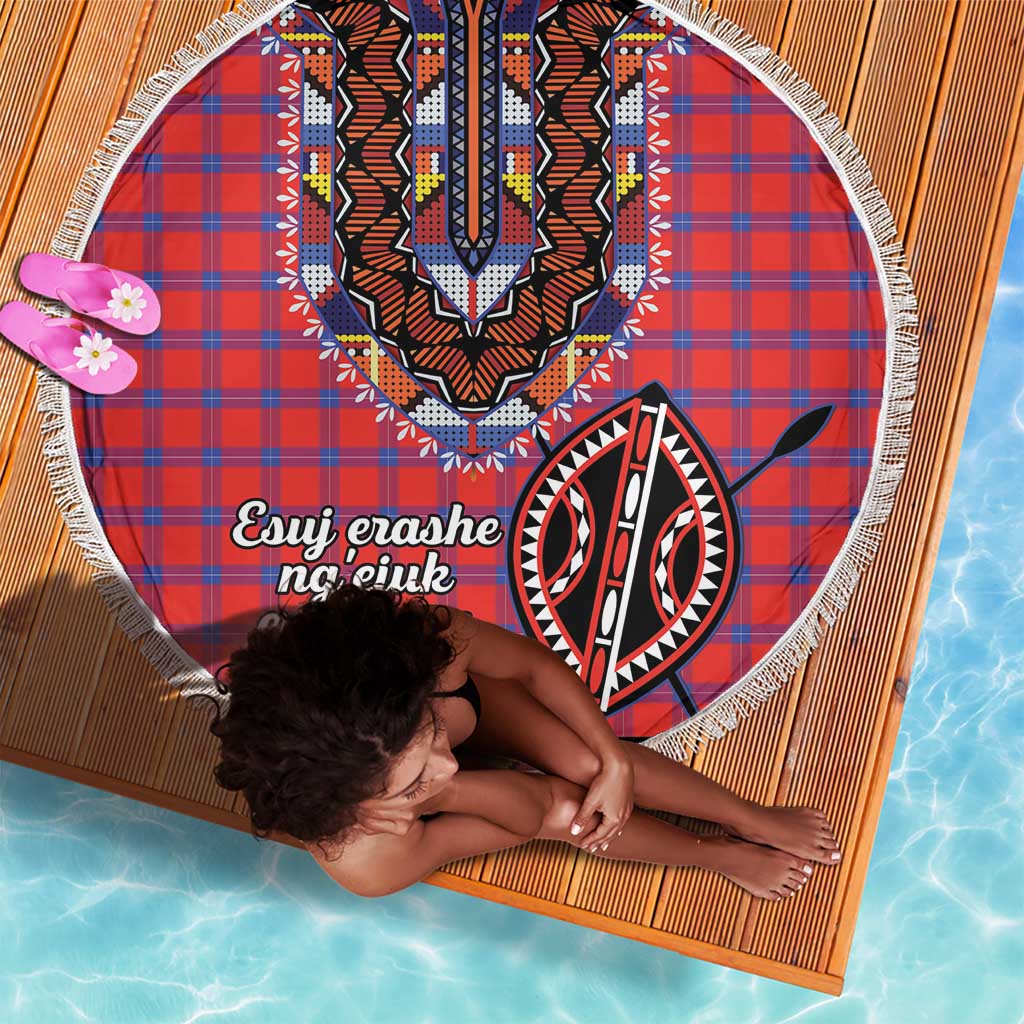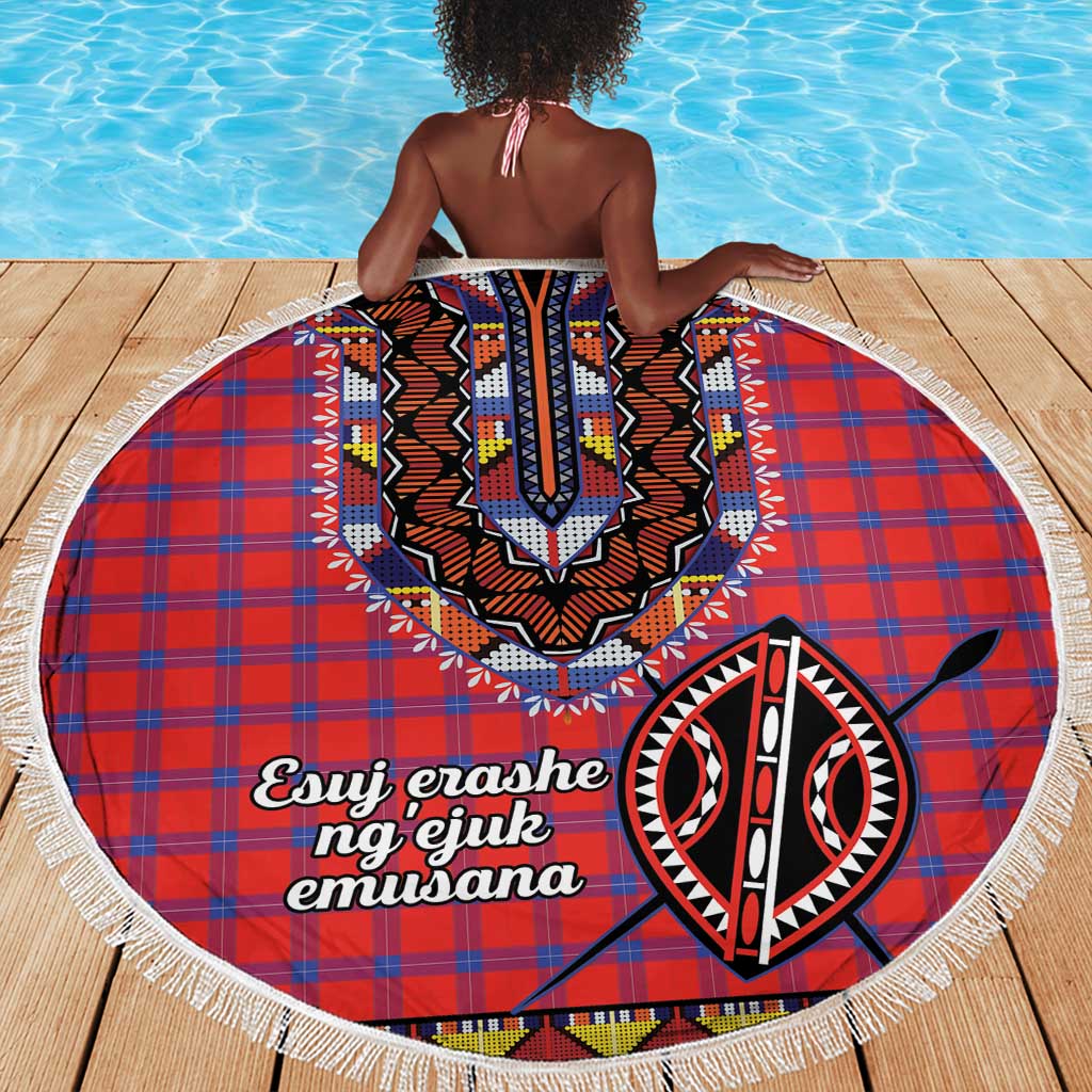 Afro Kenya Maasai Shuka Personalized Beach Blanket Maasai Shield Mix Dashiki