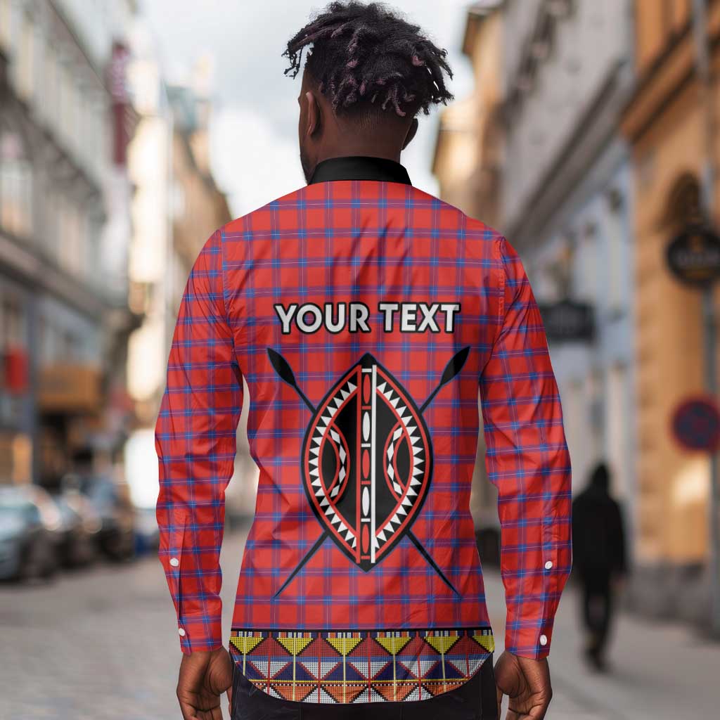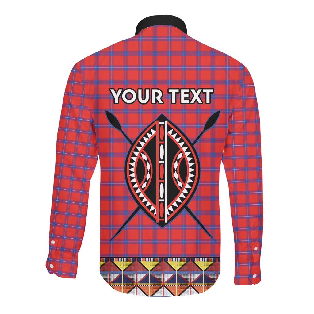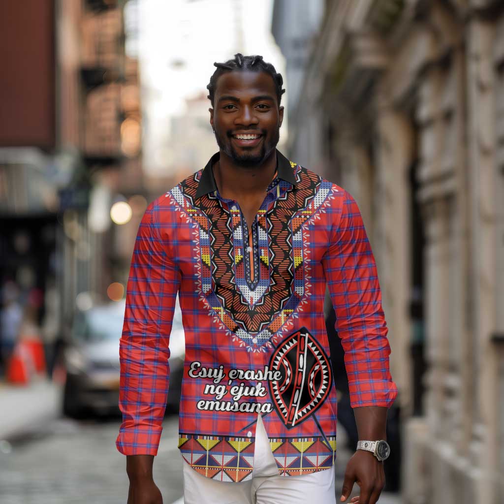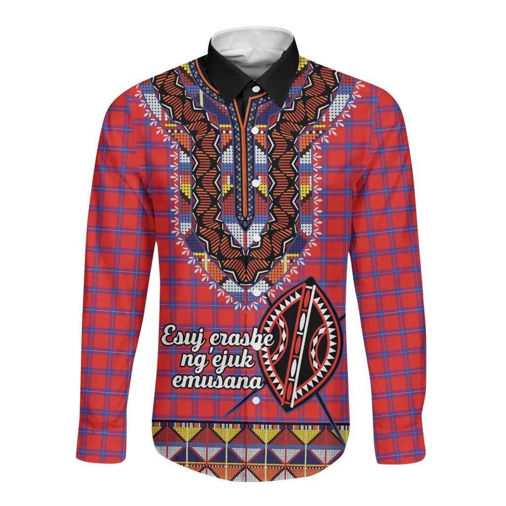 Afro Kenya Maasai Shuka Personalized Long Sleeve Button Shirt Maasai Shield Mix Dashiki