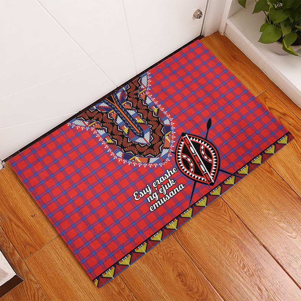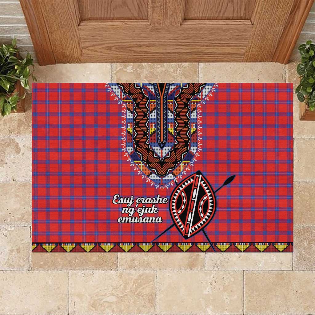 Afro Kenya Maasai Shuka Personalized Rubber Doormat Maasai Shield Mix Dashiki
