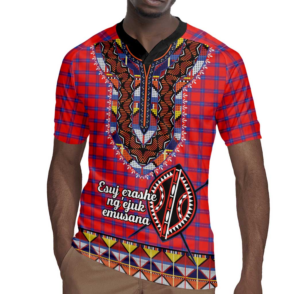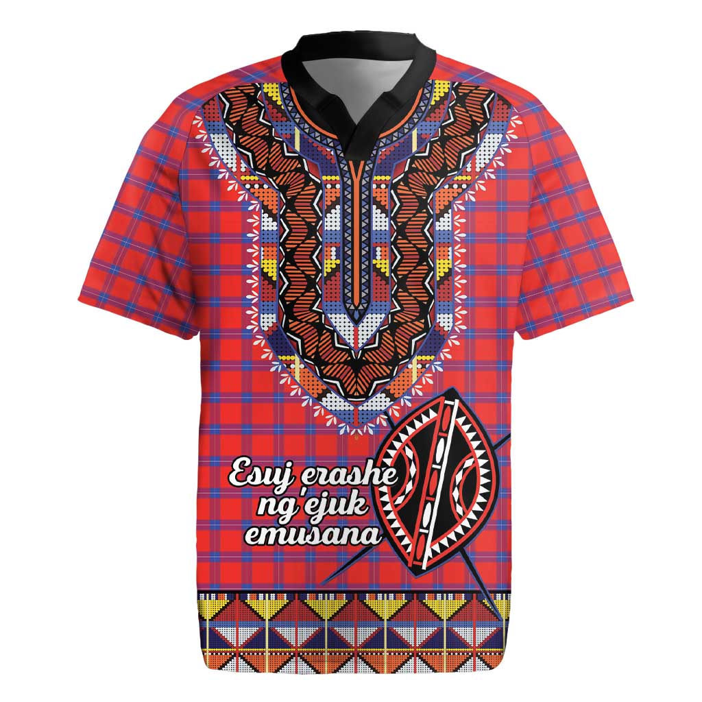 Afro Kenya Maasai Shuka Personalized Rugby Jersey Maasai Shield Mix Dashiki
