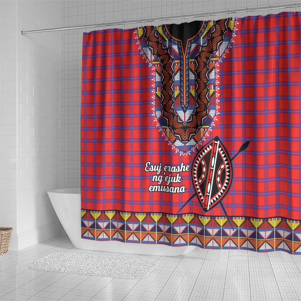 Afro Kenya Maasai Shuka Personalized Shower Curtain Maasai Shield Mix Dashiki