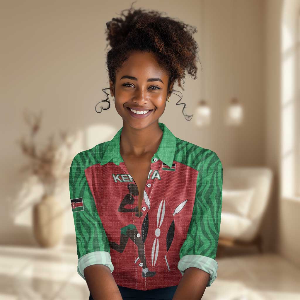 Custom Afro Athletics Kenya Women Casual Shirt Kenyan Runner - Maasai Shield