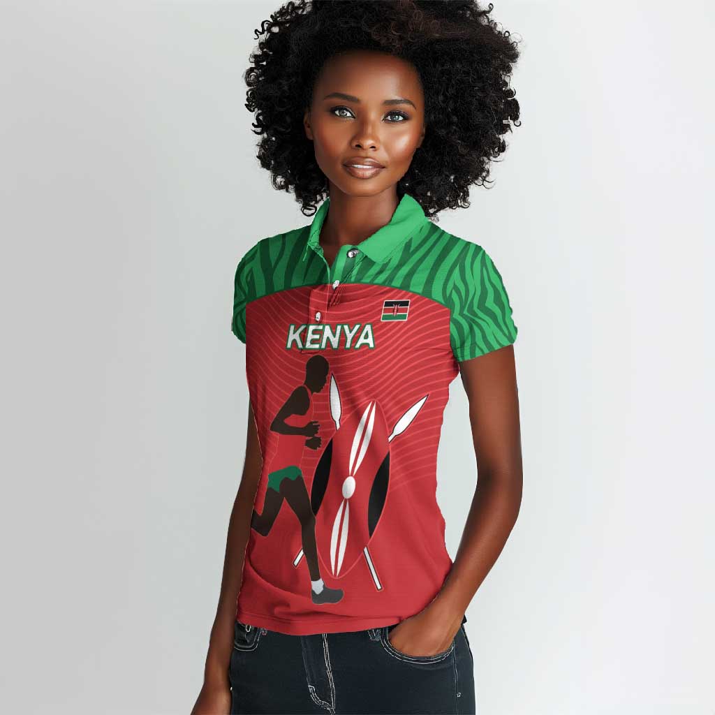 Custom Afro Athletics Kenya Women Polo Shirt Kenyan Runner - Maasai Shield