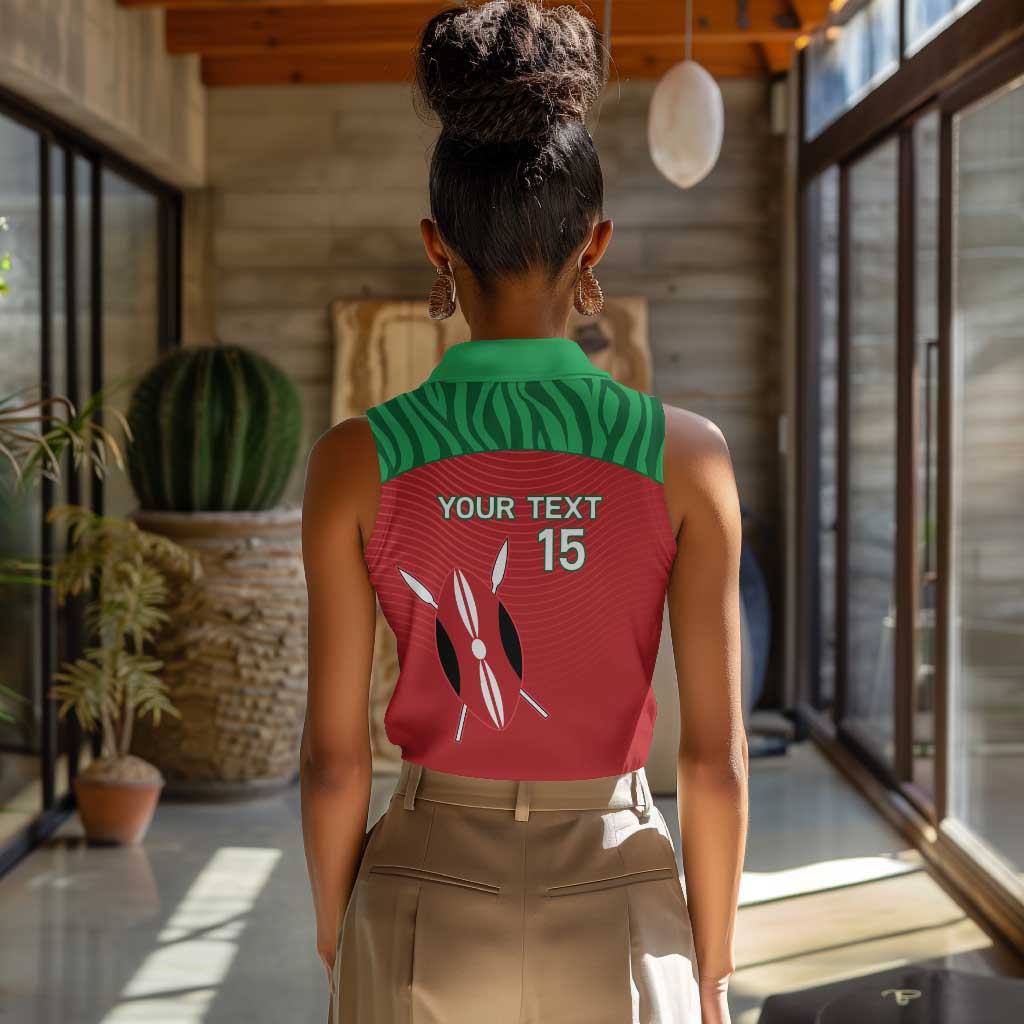 Custom Afro Athletics Kenya Women Sleeveless Polo Shirt Kenyan Runner - Maasai Shield