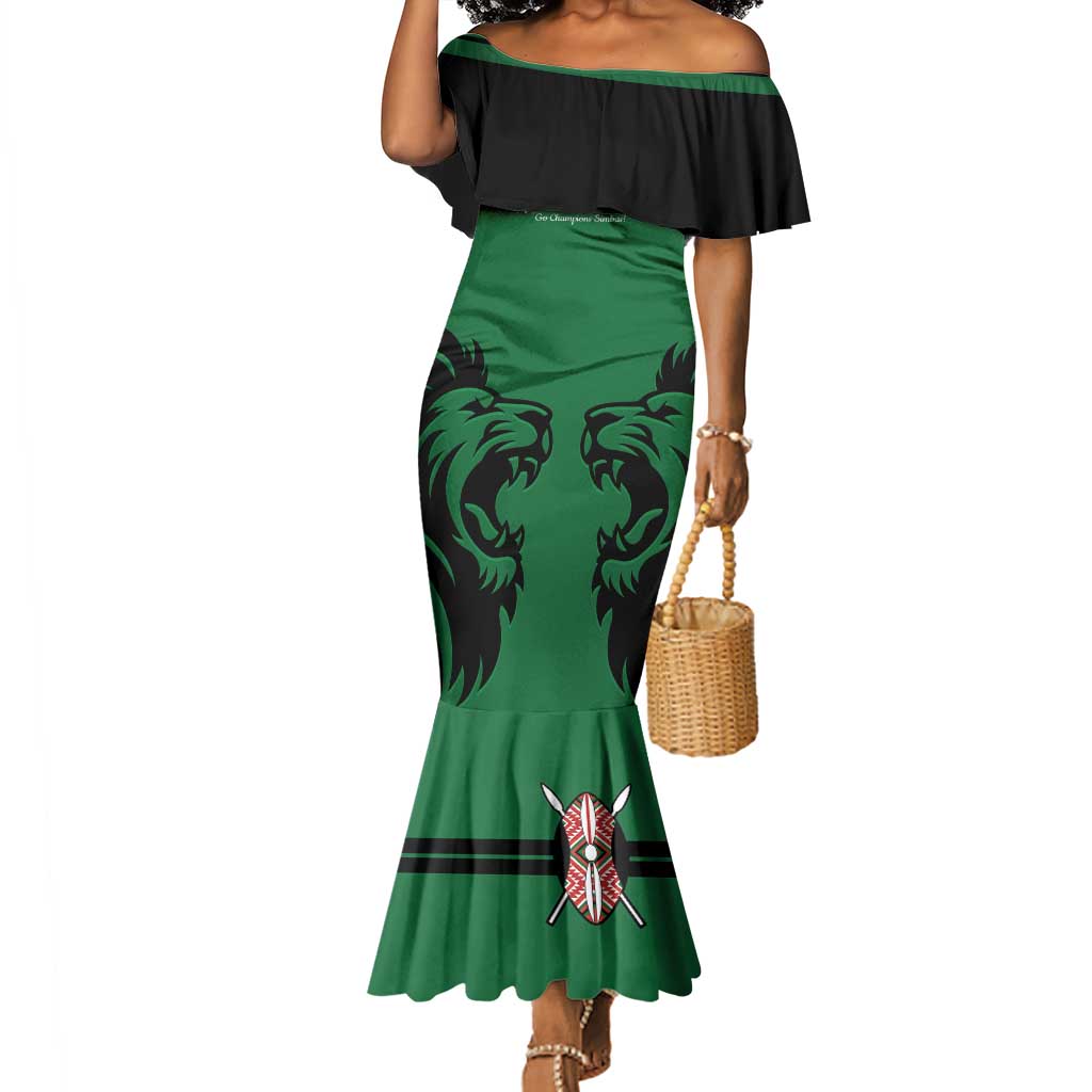 Custom Kenya Rugby Long Sleeve Bodycon Dress 2024 Go Champions Simbas - Green