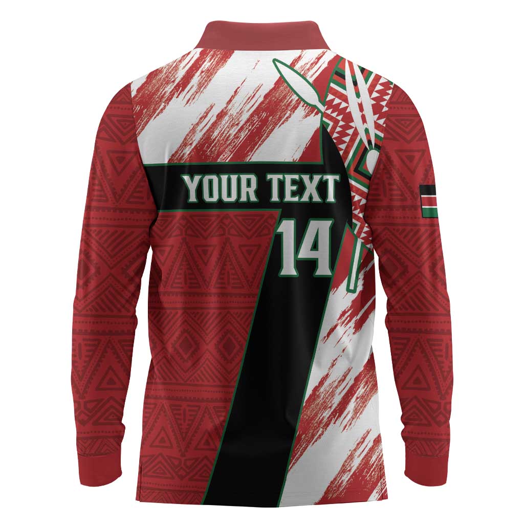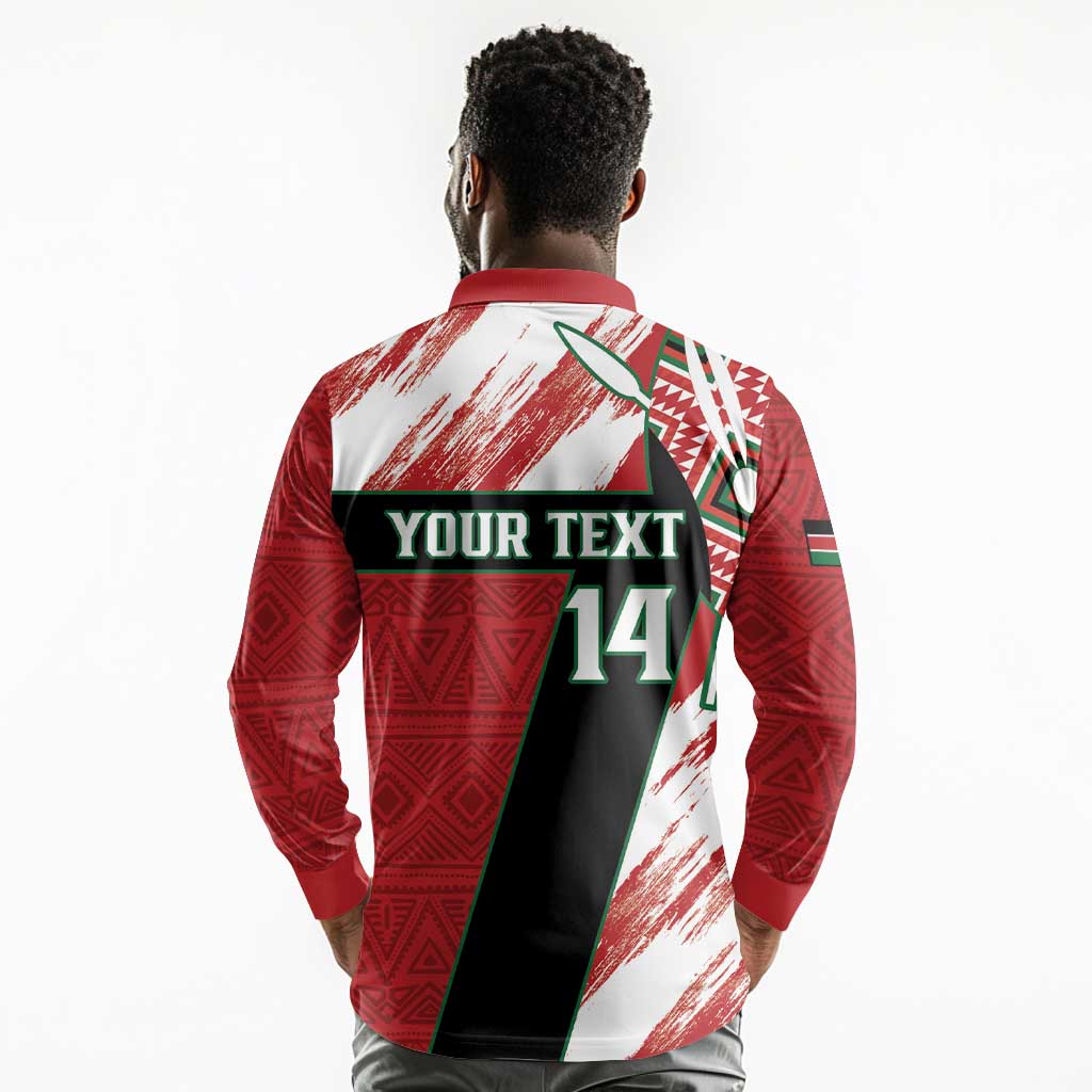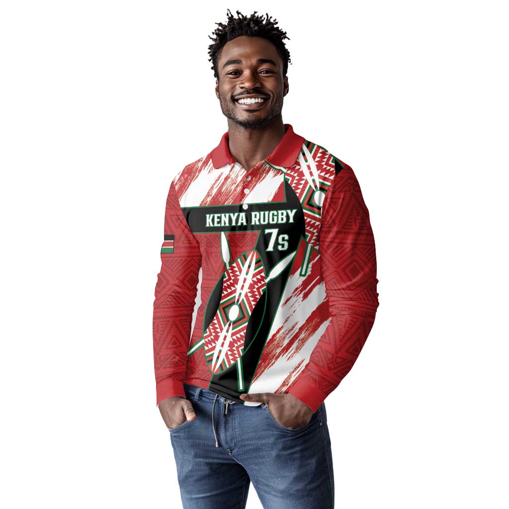 Custom Kenya Rugby Sevens Long Sleeve Polo Shirt Maasai Shield With African Pattern
