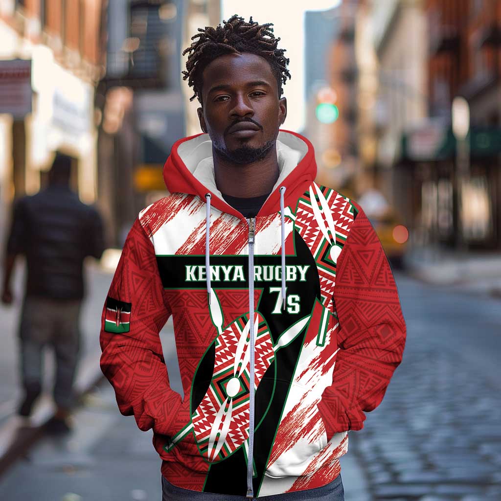 Custom Kenya Rugby Sevens Zip Hoodie Maasai Shield With African Pattern
