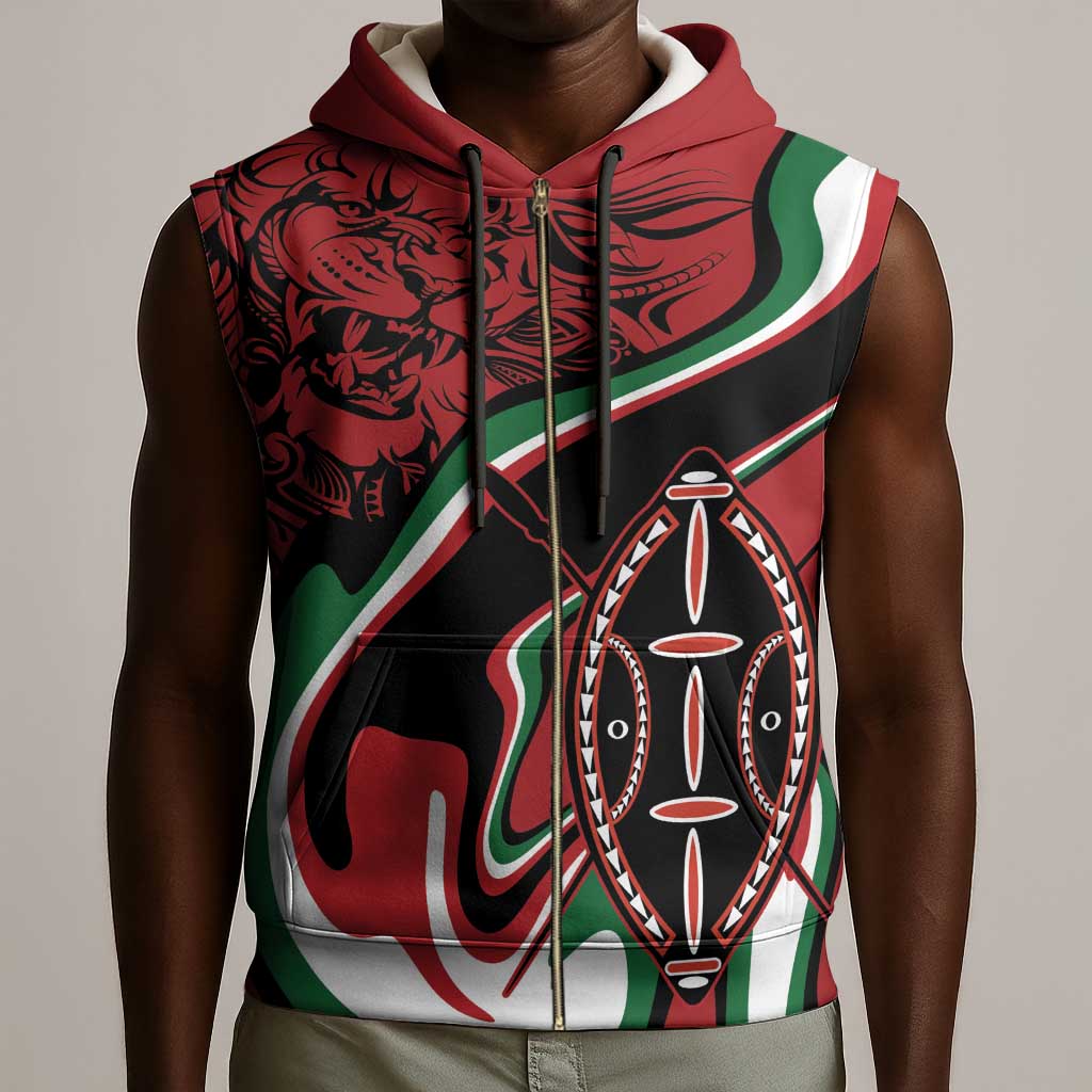 Happy Jamhuri Day Kenya Sleeveless Zip Hoodie Kenyan Lion and Maasai Shield