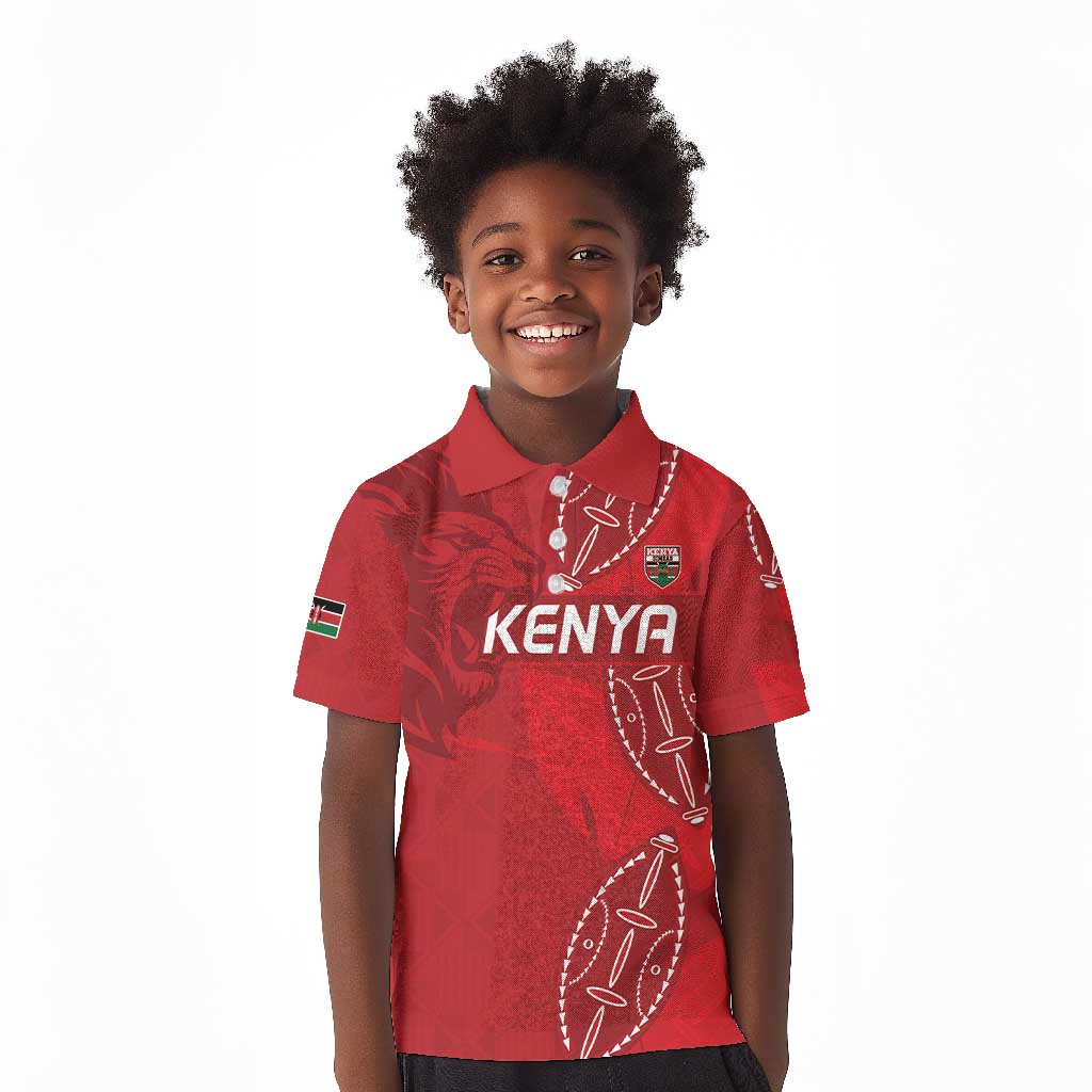 Jamhuri ya Kenya Rugby Custom Kid Polo Shirt Kenyan Shield Style - Red Color