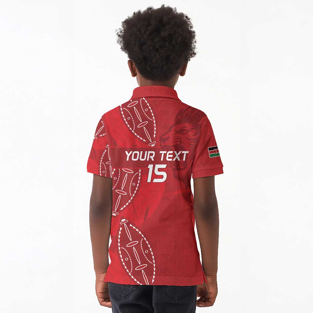 Jamhuri ya Kenya Rugby Custom Kid Polo Shirt Kenyan Shield Style - Red Color LT15