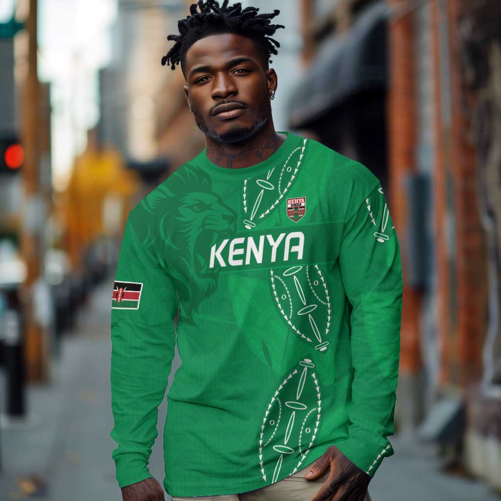 Jamhuri ya Kenya Rugby Custom Long Sleeve Shirt Kenyan Shield Style - Green Color