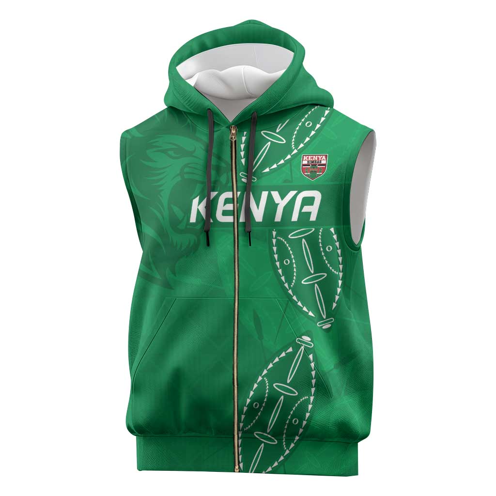 Jamhuri ya Kenya Rugby Custom Sleeveless Zip Hoodie Kenyan Shield Style - Green Color
