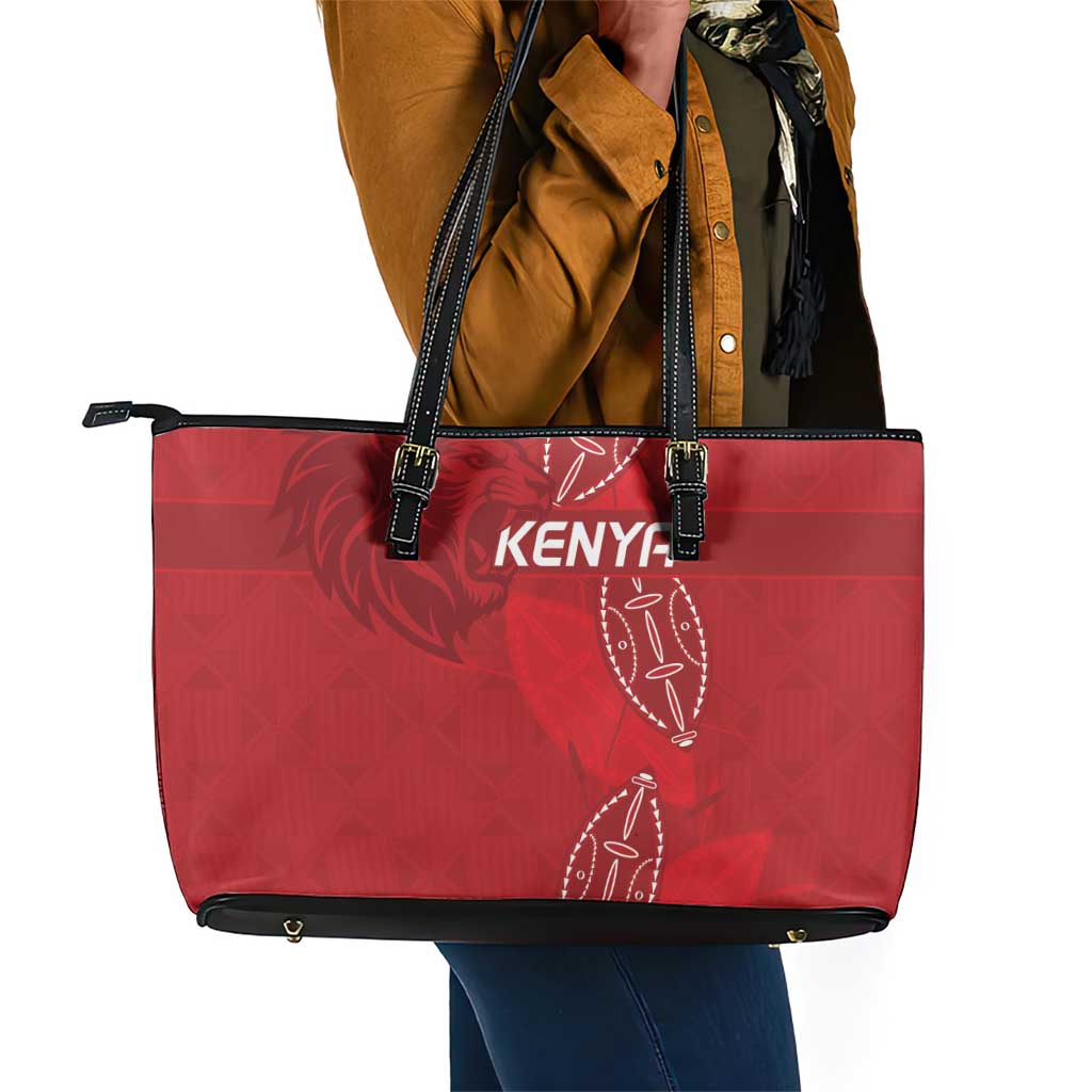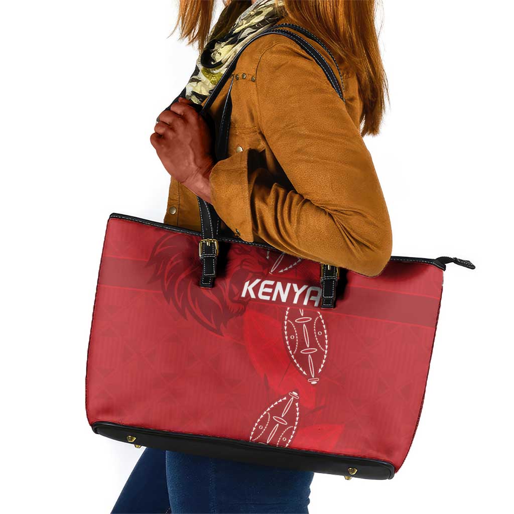 Jamhuri ya Kenya Rugby Leather Tote Bag Kenyan Shield Style - Red Color