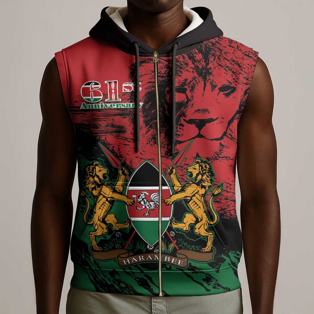 Jamhuri Ya Kenya Sleeveless Zip Hoodie African Lion - Coat Of Arms