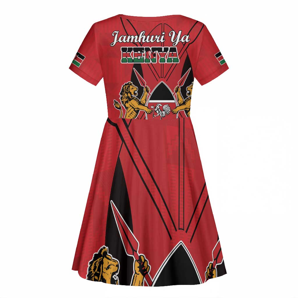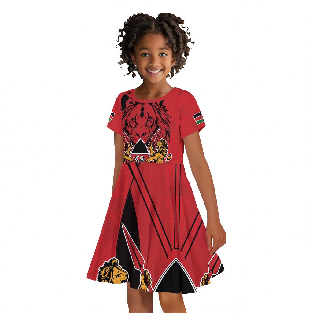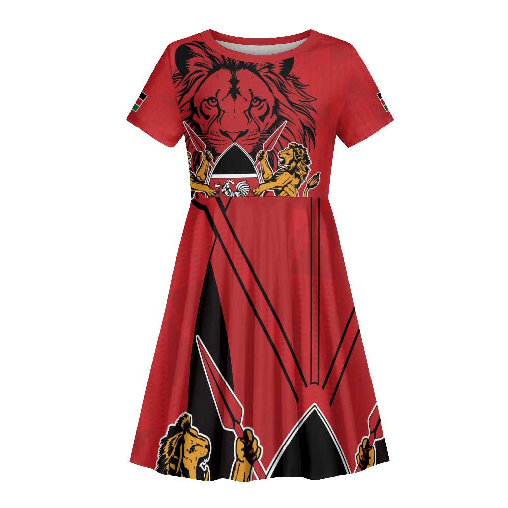Kenya Kid Short Sleeve Dress Coat Of Arms With Kente Patterns