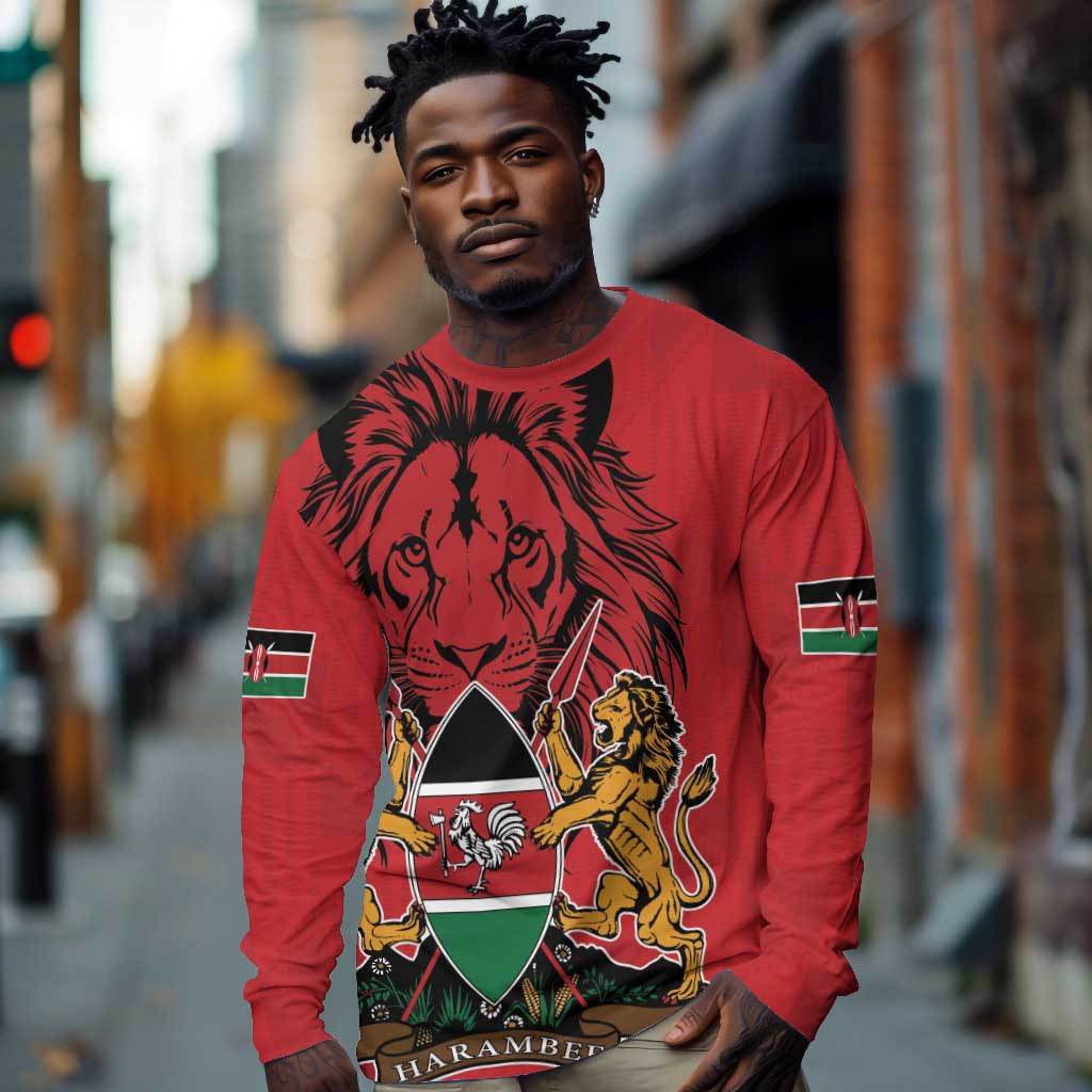 Kenya Long Sleeve Shirt Coat Of Arms With Kente Patterns