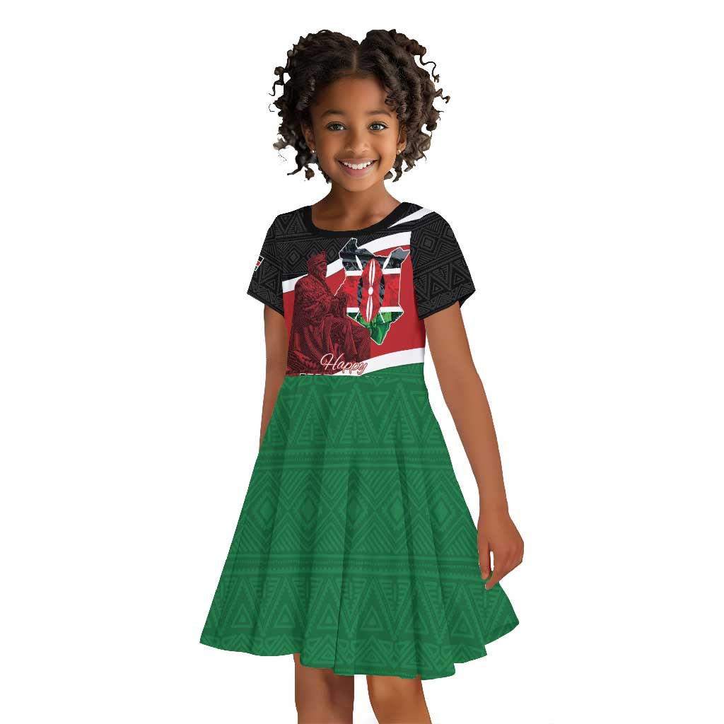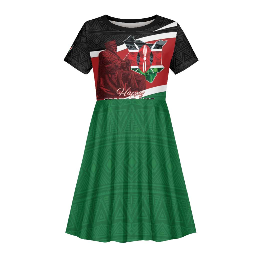 Kenya Madaraka Day Kid Short Sleeve Dress Jomo Kenyatta With Map