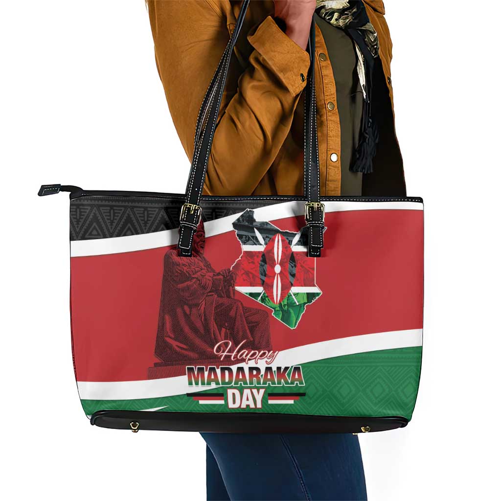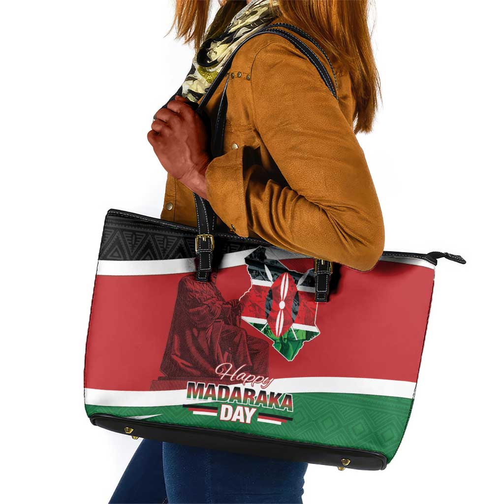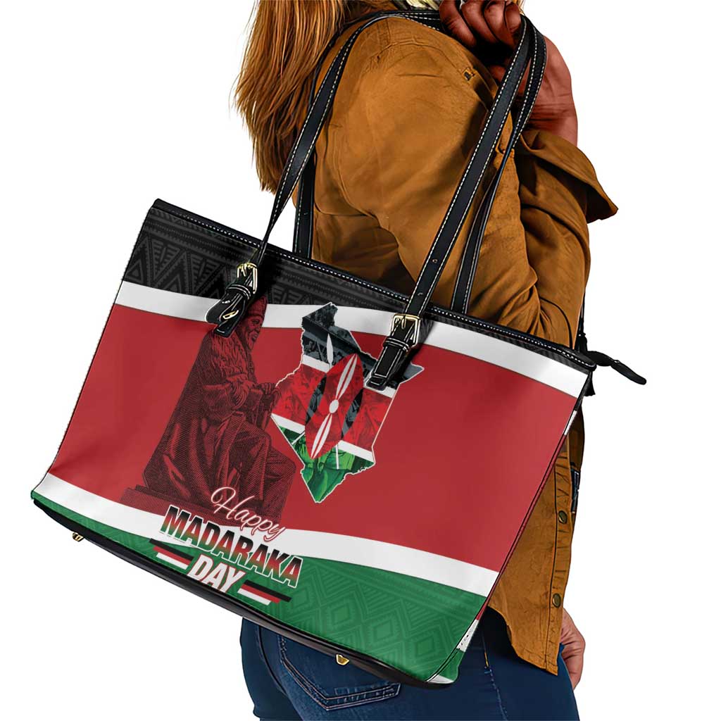 Kenya Madaraka Day Leather Tote Bag Jomo Kenyatta With Map