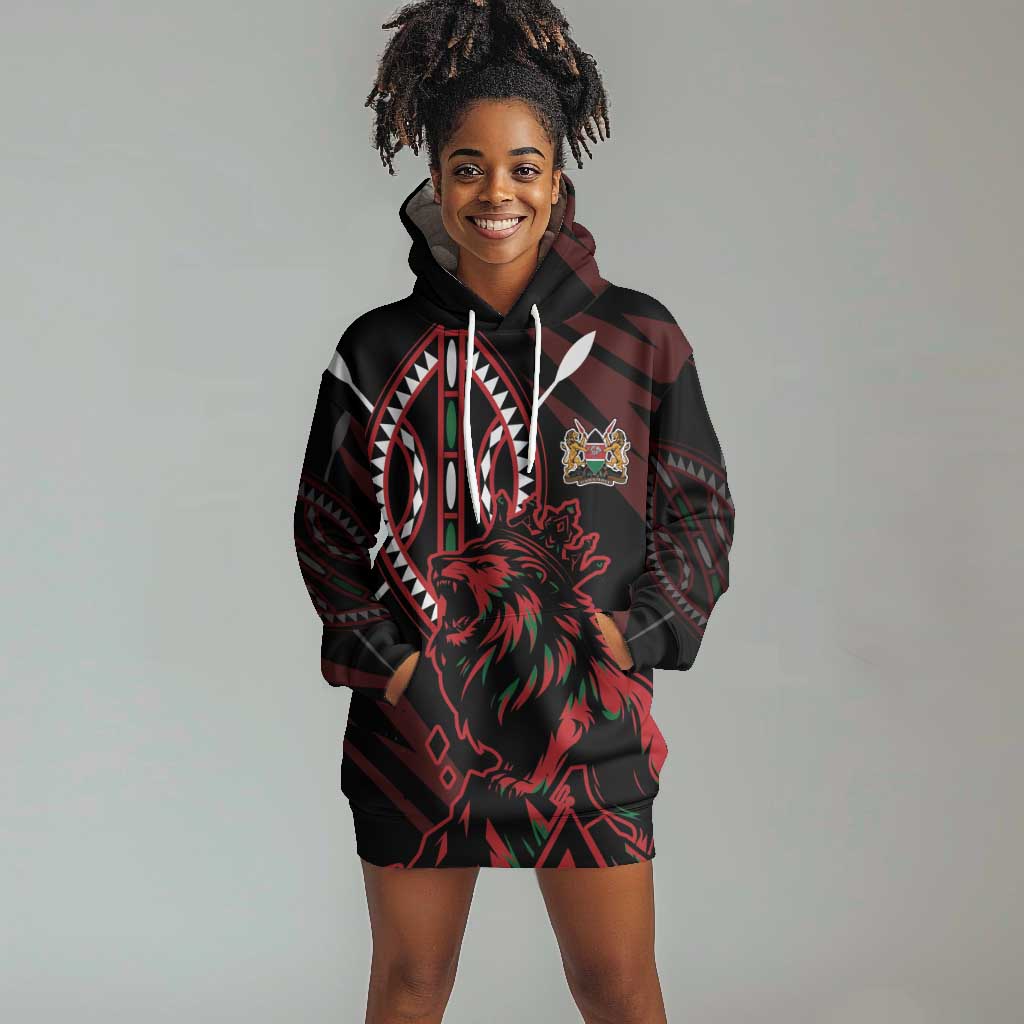 Kenya Personalized Lion Hoodie Dress Stylized Maasai Shield