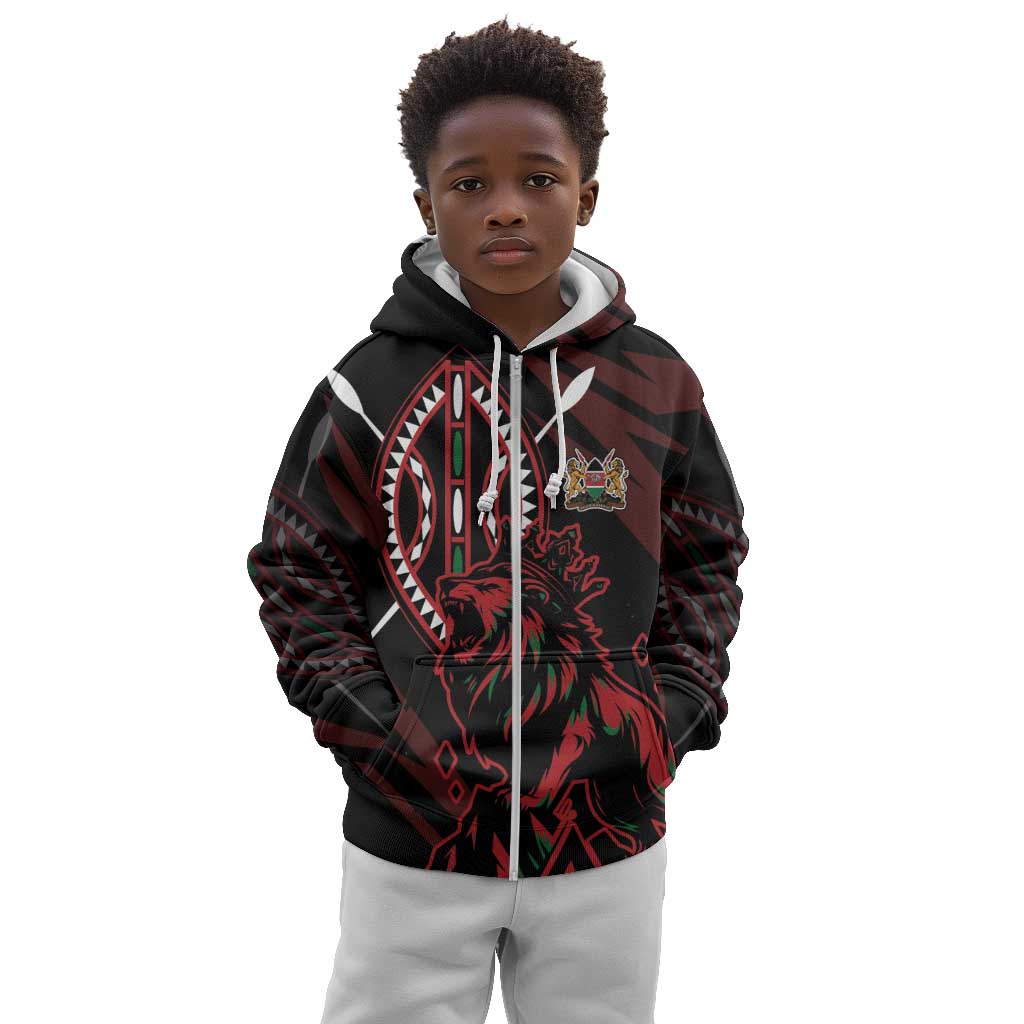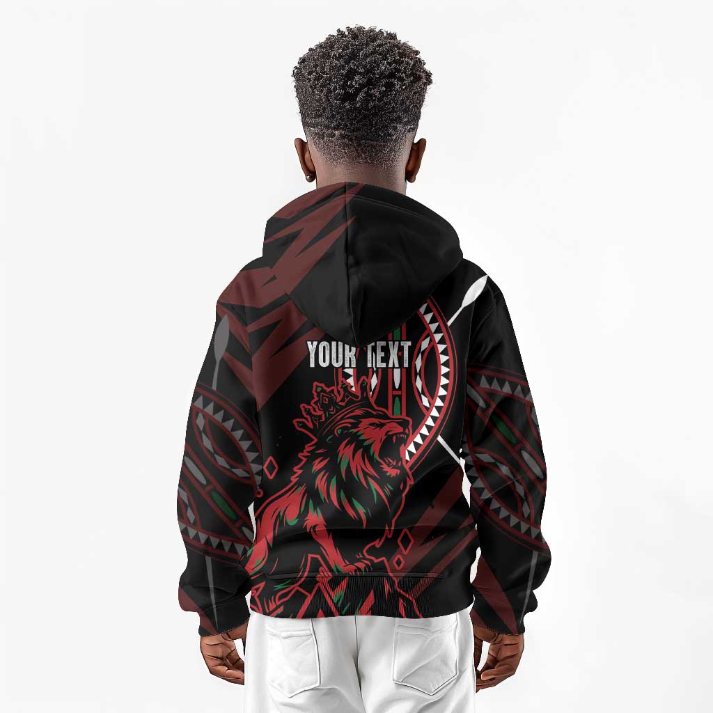 Kenya Personalized Lion Kid Hoodie Stylized Maasai Shield