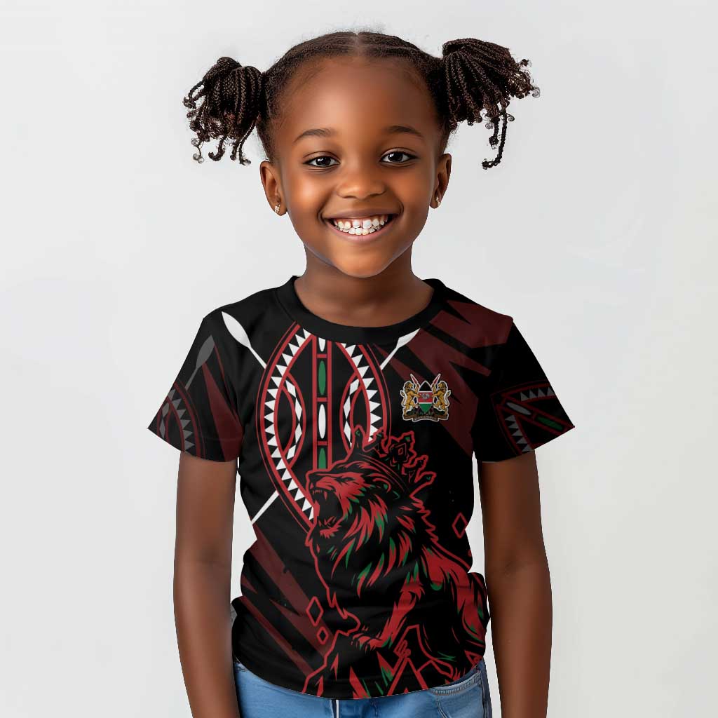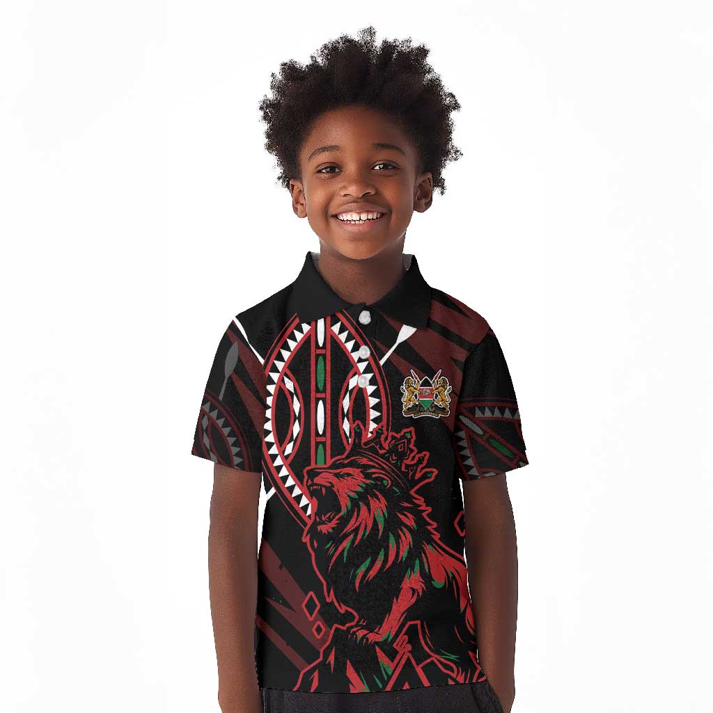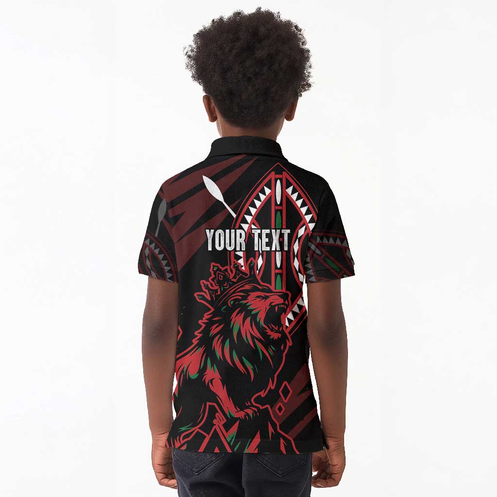 Kenya Personalized Lion Kid Polo Shirt Stylized Maasai Shield