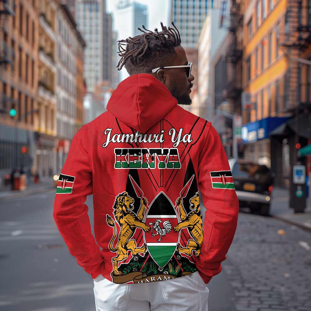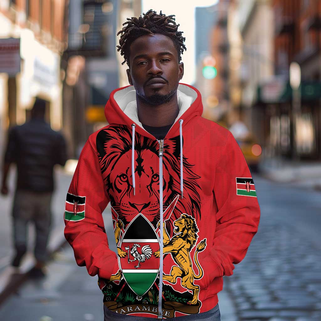 Kenya Zip Hoodie Coat Of Arms With Kente Patterns