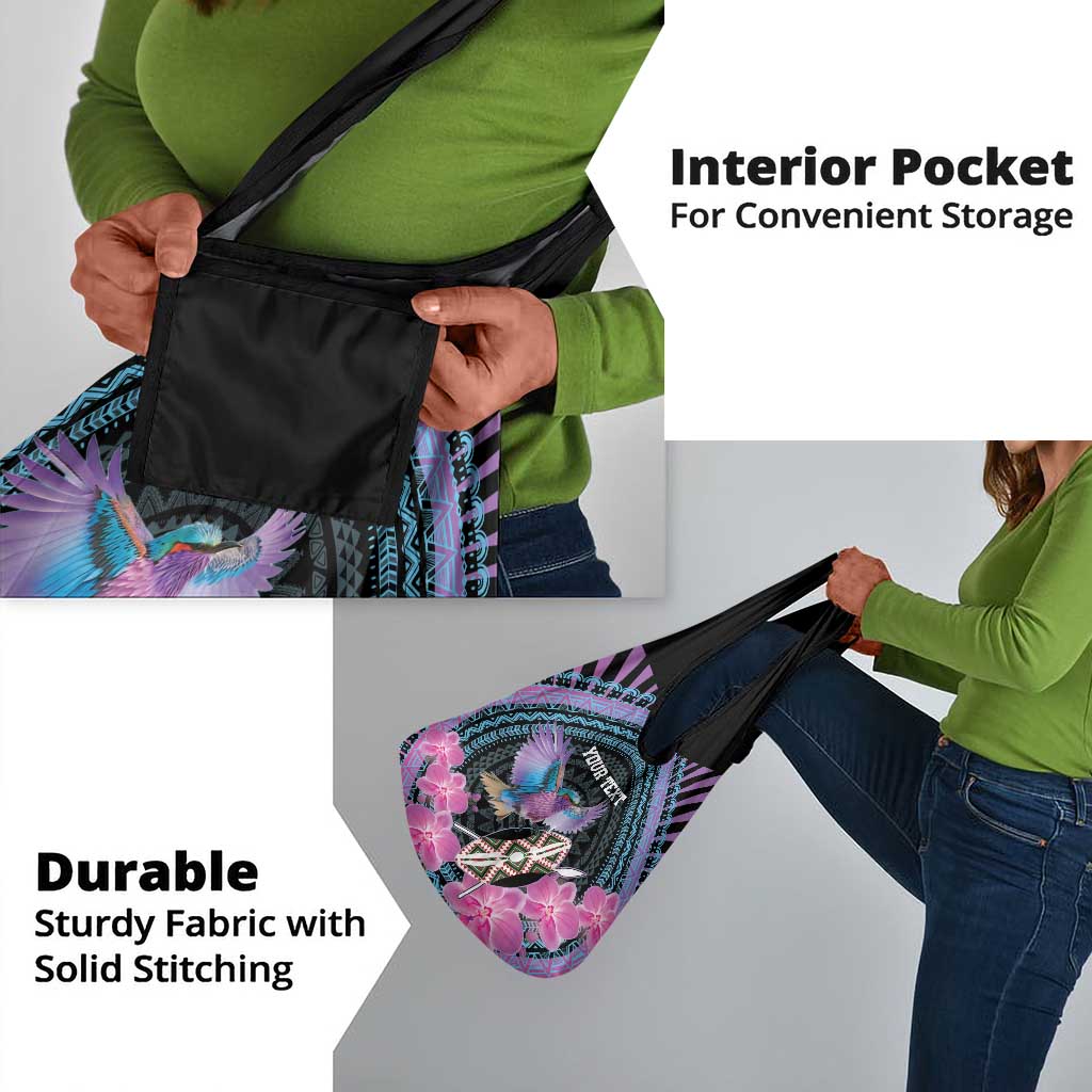 Personalised Kenya Lilac Breasted Roller Grocery Bag Orchid Flower - African Pattern