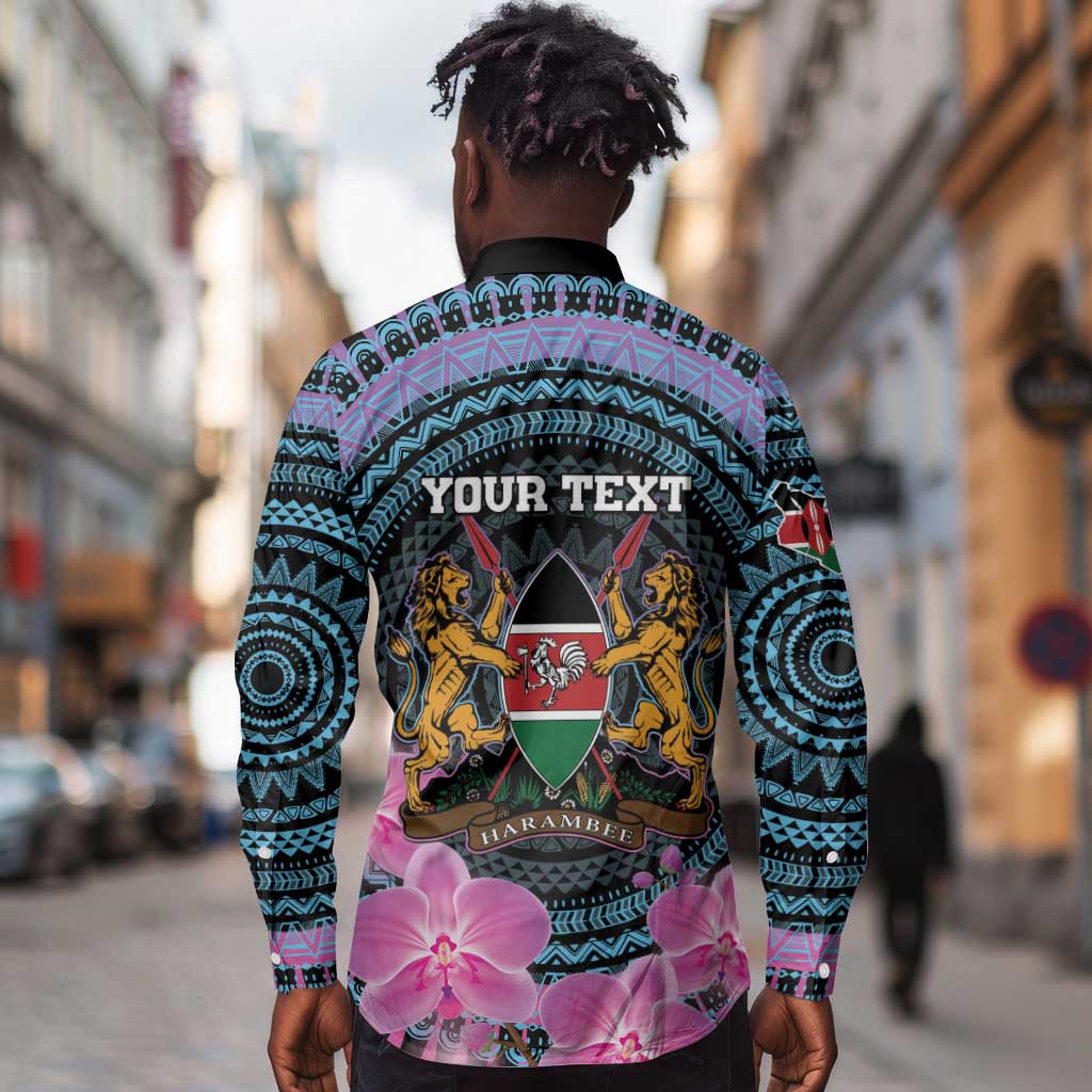 Personalised Kenya Lilac Breasted Roller Long Sleeve Button Shirt Orchid Flower - African Pattern