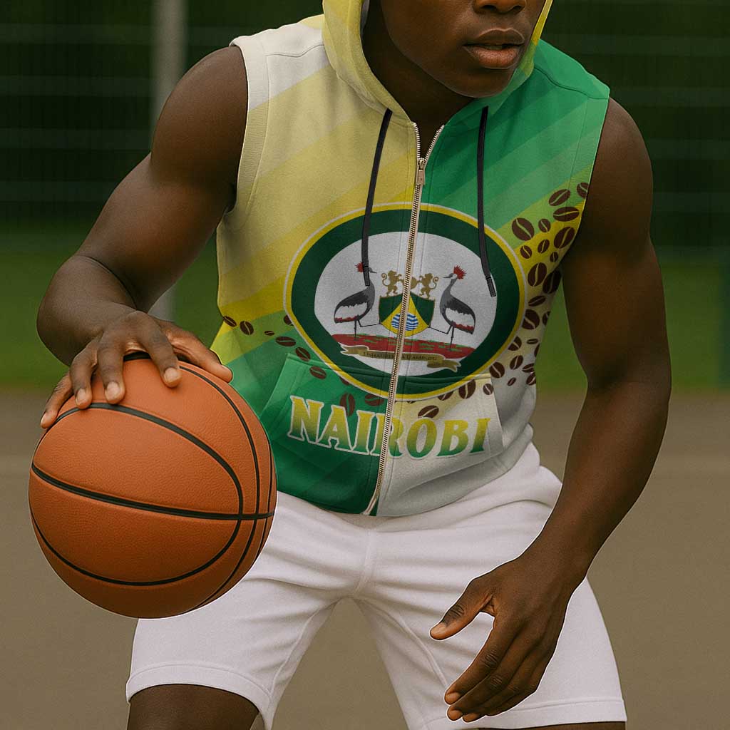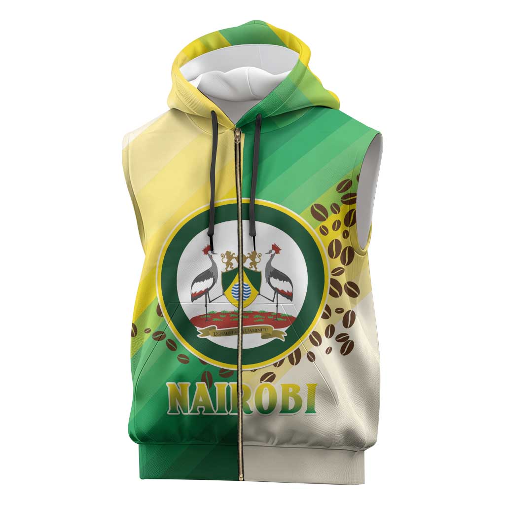 Personalised Nairobi Kenya Sleeveless Zip Hoodie Coat Of Arms With Coffee