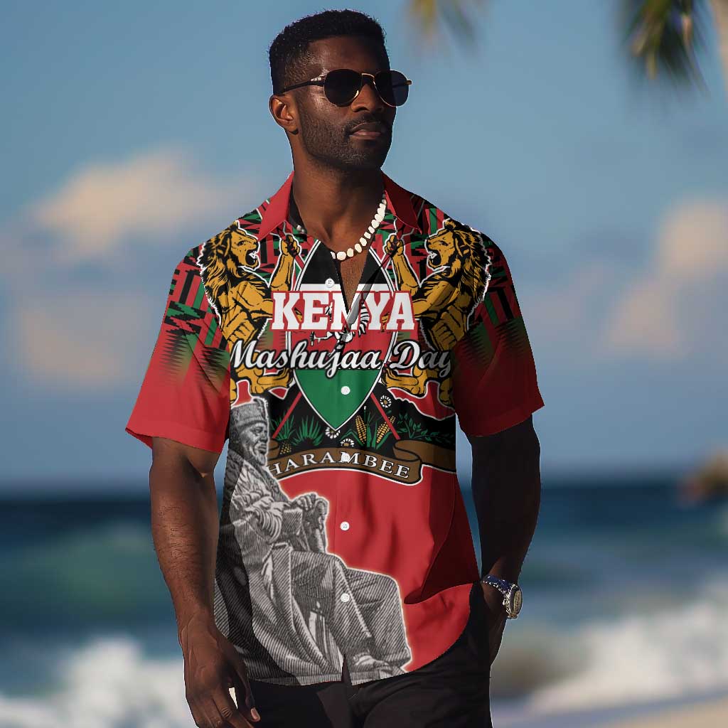 Personalized Afro Kenya Mashujaa Day Hawaiian Shirt Mzee Jomo Kenyatta With Coat Of Arms